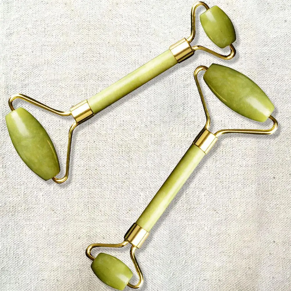 Спа-ролик для массажа лица с двойными насадками, Нефритовый камень,...