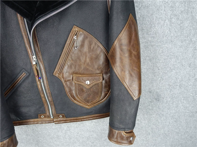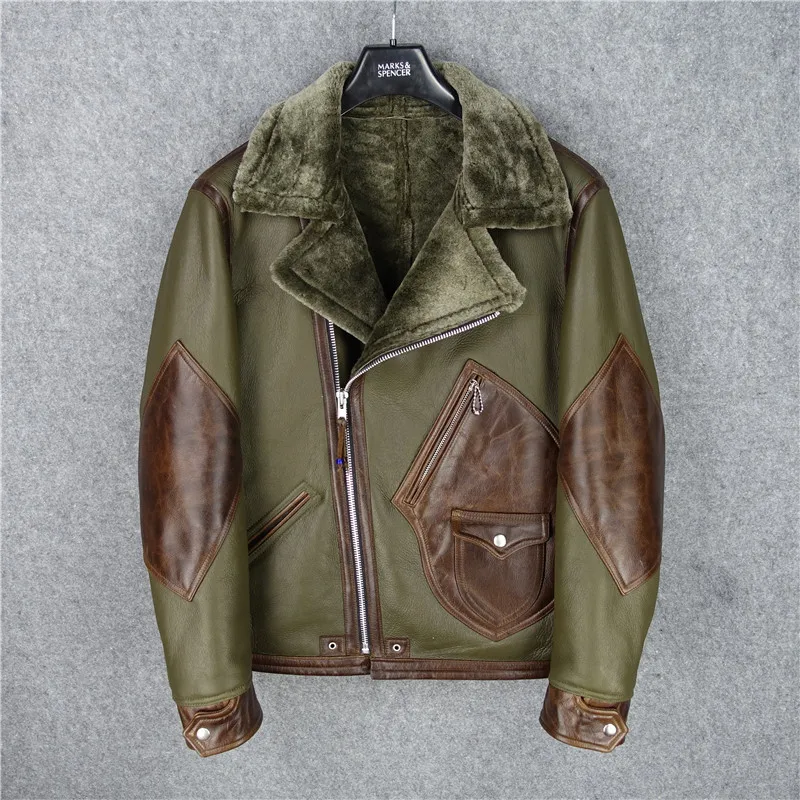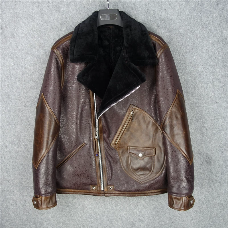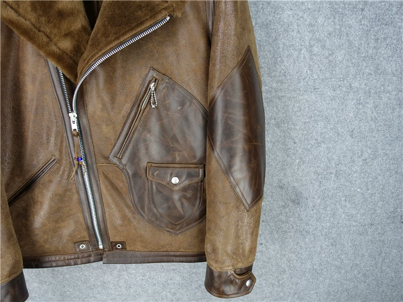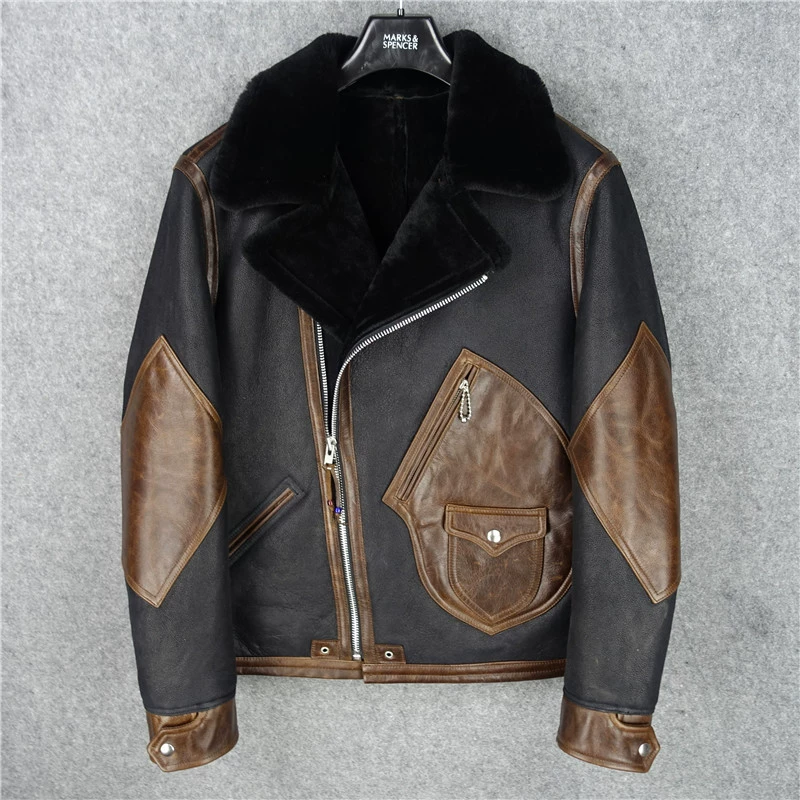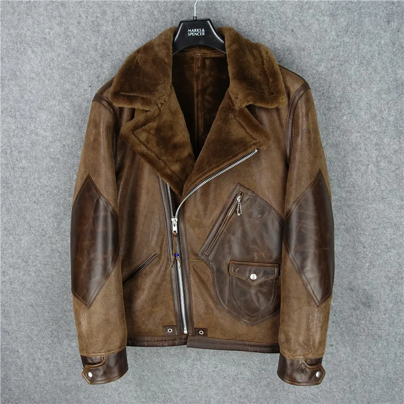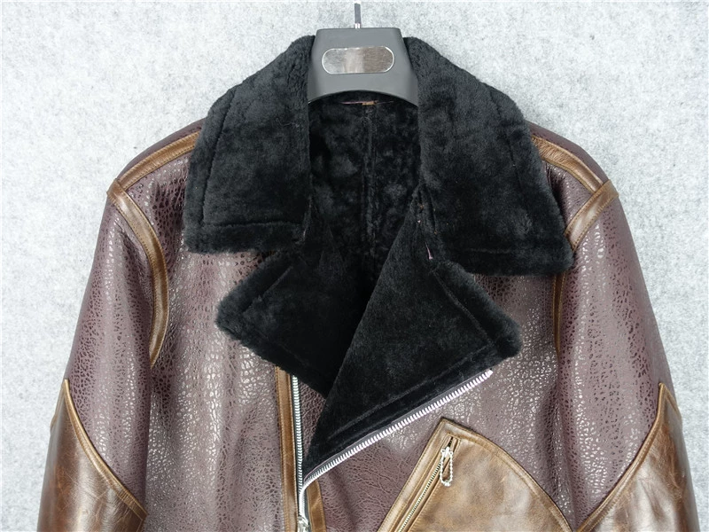 XW большой размер США супер качество теплая Натуральная Овечья Кожа Мужская зимняя меховая куртка из овчины