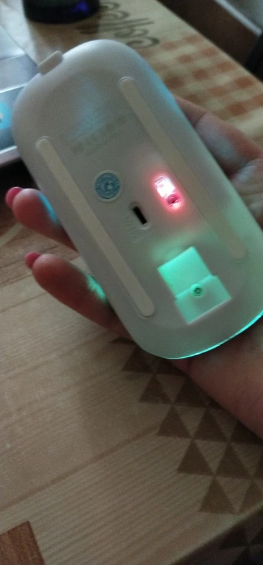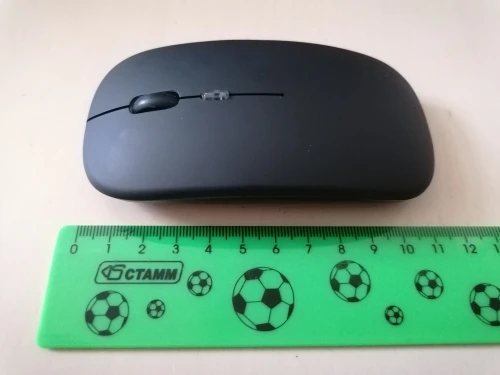 Товар полностью соответствует описанию имеет массу достоинств учитывая его стоимость просто подарок (обязательно закажу ещё). 1. Подключается по блютуз и как обычная беспроводная мышь. 2. Дальность действия по блютуз порадовала (такого не встречал ни у одной беспроводной мышки) на расстоянии 40 метров работает уверенно, дальше не проверял небыло необходимости. 3. Лежит в руке удобно, размер мышки по высоте почти в два раза меньше обычных, что позволяет более удобно расположить её в сумке с ноутбуком. (старая мышка всегда выперала). 4. Заряжается и теперь не нужны никакие батарейки. 5. Пластик на ощупь приятный имеет достойный внешний вид. 6. Подсветка не яркая, медленно переливаетсяи не отвлекает боковое зрение а лишь позволяет найти мышь в темноте. 7. Кнопки нажимают я оооочень тихо!!! За исключением кнопки на центральном колесике. (я вобще её редко использую), теперь когда дома все спят модно спокойно работать до поздна и рано утром никому не мешая. СУПЕР! Рекомендую не пожалеете!