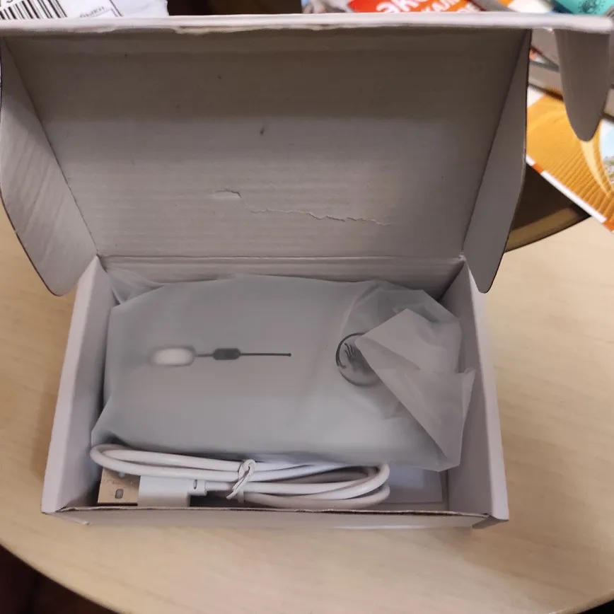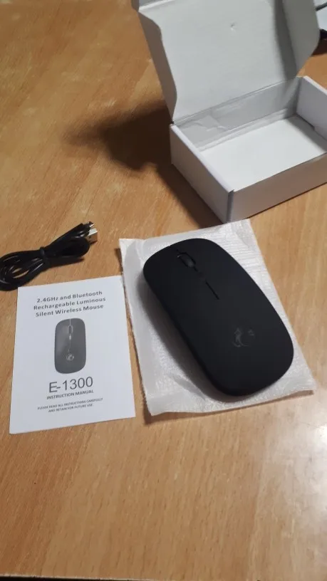 Долгая доставка - 20 дней в РО из РФ. Привёз курьер дпд. Мышь отличная, сразу подключилась, но после того, как я нашла внизу переключатель (там 3 положения), хотя ноут установил блютуз быстро. В комплекте кабель тип с