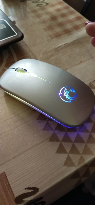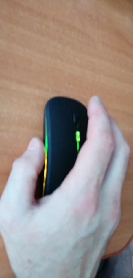 Мышка просто класс! пришла буквально за пару дней, курьером доставили на дом. Выглядит красиво, переливается, работает без проблем, очень понравилось, что можно от провода заряжать и пользоваться как с проводом, так и без с помощью usb или же блютуза, зарядку долго держит.