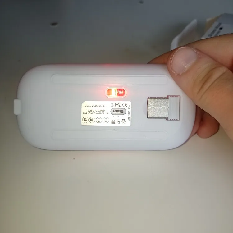 Купил 11.11 за 403₽. 5post доставила за 3 дня 600 км от Москвы. Нужна была компактная невысокая Bluetooth аккумуляторная, чтобы место не занимала в скмке и USB. Естественно, такая для игр не годится. А вот работать с нею удобно, если наловчиться не загребать её в кулак. Гнездо зарядки microUSB. К сожалению, Type-C в мышах ещё нет. Можно одновременно заряжать и работать. USB донгл спрятан в гнезде на пузе. Легко вынимается ногтем, если смотрел, какой стороной вставляел. На пузе выключатель питания BT—Off—2.4. Подключал USB к компу и TV — без проблем. Bluetooth создаёт сразу 2 подключения: BT4 для старых и BT5.1 для новых ОС. Windows 7 выбрала BT4. Windows 10 и Android 10 выбрали BT5.1. Работает нормально, как проводная. Основные кнопки почти бесшумные. Кнопка режимов (сверху прозрачная) щёлкает громко (а зачем её вообще нажимать?). Кнопка колеса чуть потише. Колесо крутится… не так приятно, как на дорогих. Огоньки красиво переливаются. В темноте не слишком ярко. Отключить не получилось.