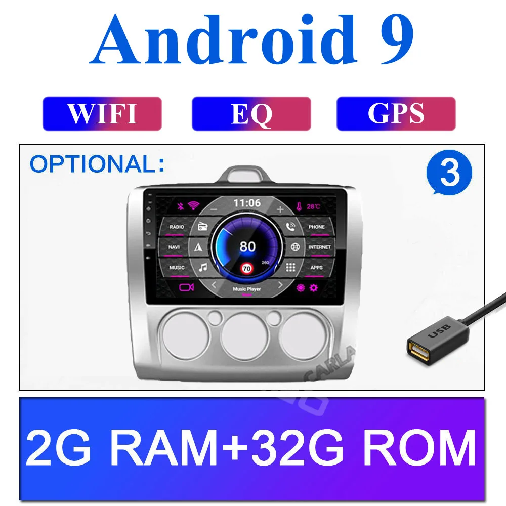 Автомагнитола для Ford Focus Exi AT2004, 2005, 2006, 2007, 2008, 2009-20112DIN, Операционная система Android 9 с 9-дюймовым экраном, GPS-навигация