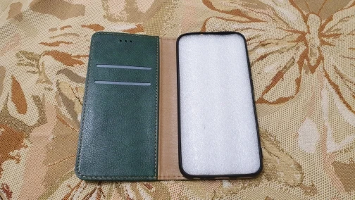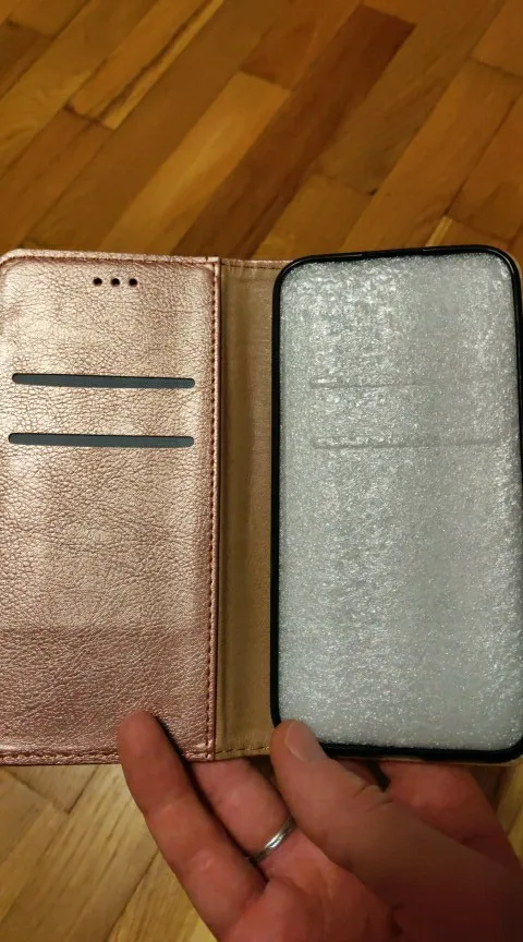Телефон плотно сел в силиконовый чехол, есть отдел для денег и карточек. Отличный кожзамовый чехол, в точности как на фото заказа.