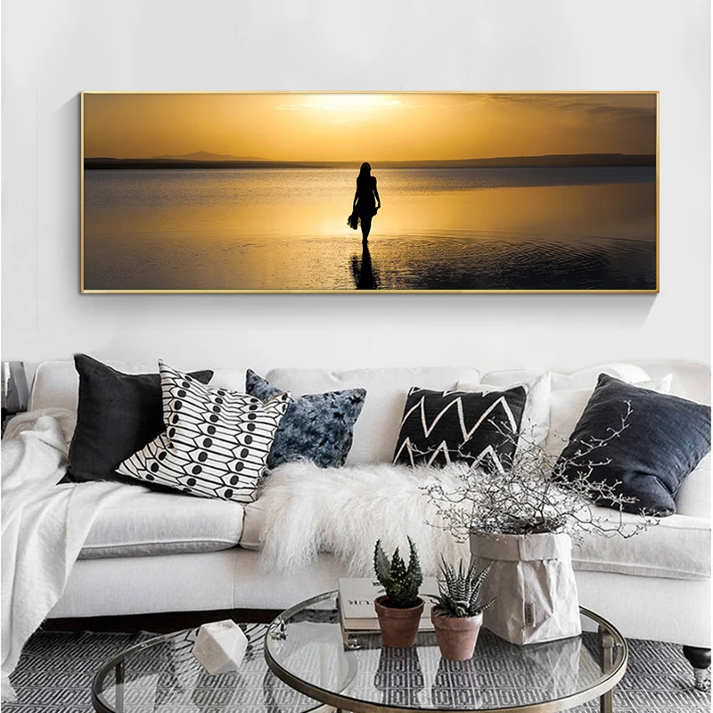 Prints canvas painting poster homeScandinavian Landscape Oil Paintings Sunset Sea Panorama