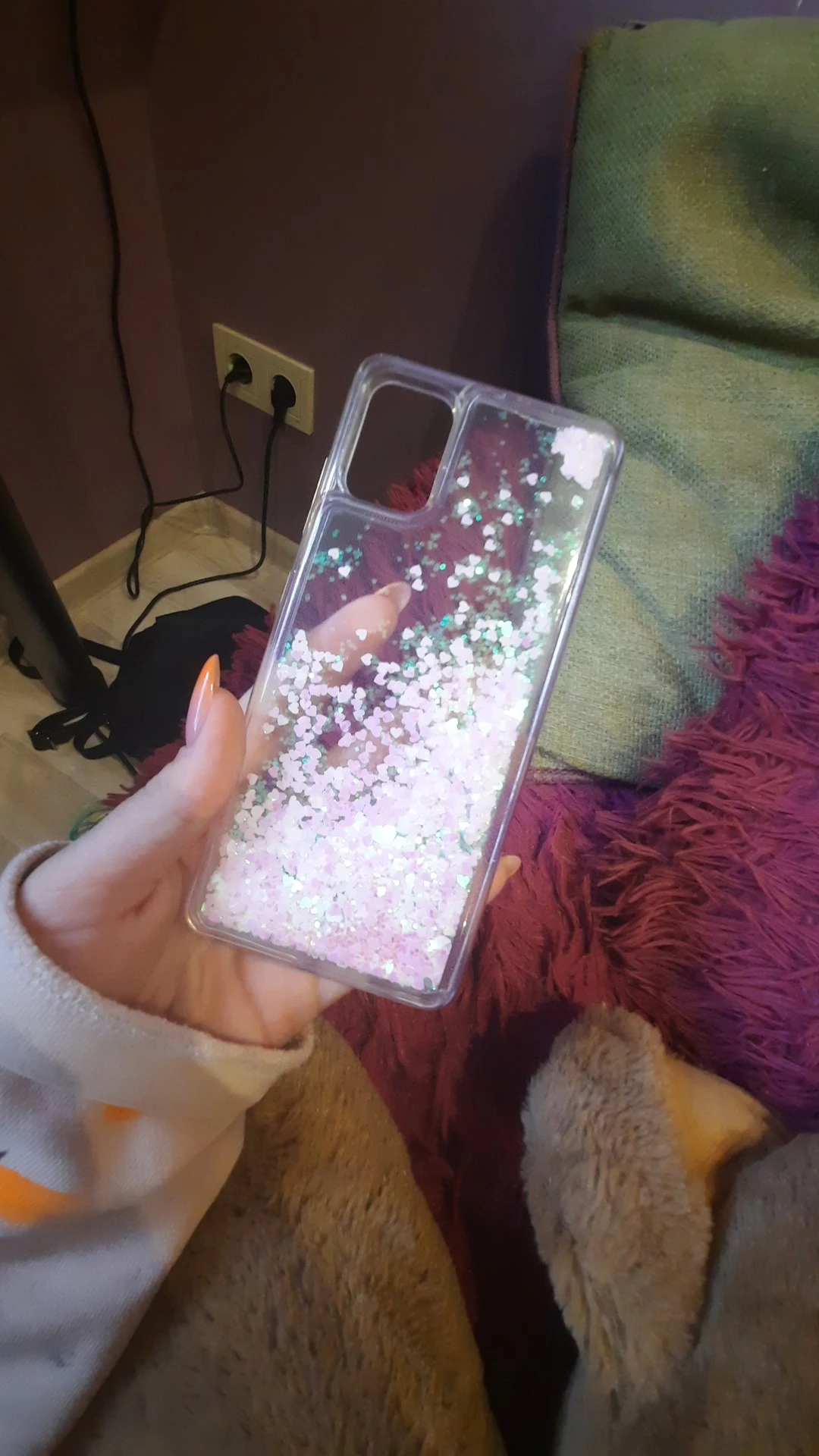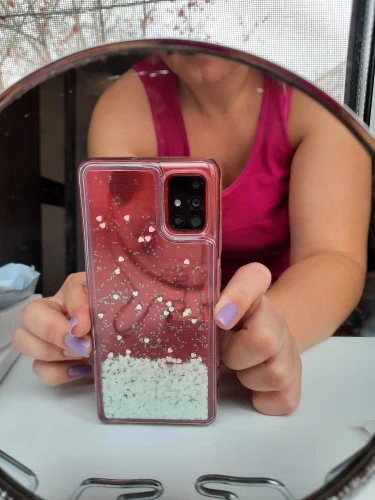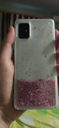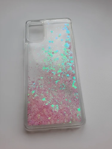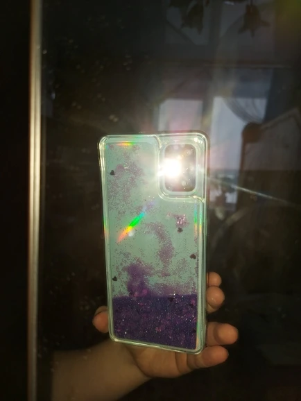 чехол бомба. силикон, не скользит в руке. блёстки супер, но немного застревают в углах. падают так завараживающе, их много. на А51 подошёл как родной. камеру защищает и не смотря на то что он очень толстый около 5мм, фотографировать не мешает, кнопки и выходы совпадают. советую, берите.