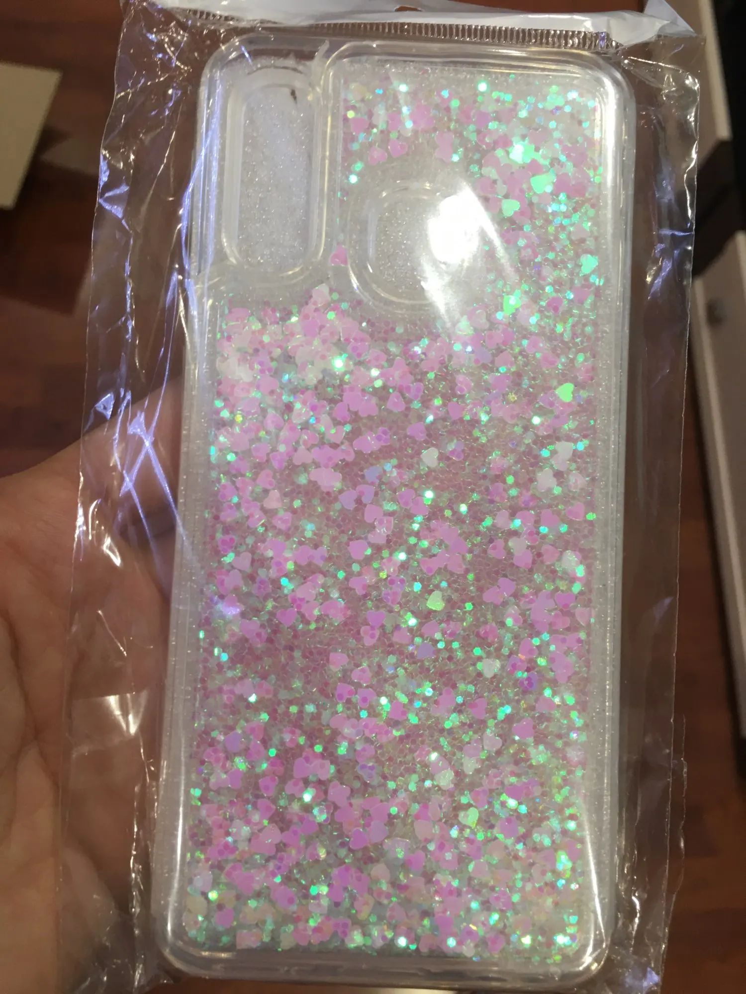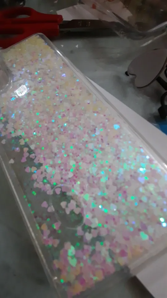 хороший чехол, только толстоват, палец для идентификации еле входит. но блёстки перетекают красиво