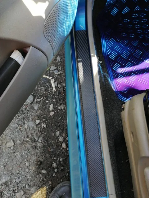 Особенности: -Изготовлен из 3D углеродного волокна, подходит для защиты от скольжения в дождливый день. -Прочный клей, водонепроницаемый, противопожарный. Отлично подходит для обновления и замены. -Лучше защищает от царапин, полностью закрывая накладку на порог автомобиля вверх и сбоку. Спецификация: -Название: автомобильные аксессуары, накладки на пороги двери, наклейки для защиты порога педали из углеродного волокна -Материал: углеродное волокно 3D (не настоящее углеродное волокно) -Размер входной двери: 40x7 см (2 шт.) -Размер задней двери: 60x7 см (2 шт.) -Цвет: черный -Примечание: измерения сделаны вручную, фактический размер имеет небольшую погрешность. -Применимый автомобиль: Универсальный (можно резать) Как установить его? Очистите и высушите область нанесения. Измерьте область нанесения. Снимите и приклейте, затем плотно прижмите пластиковым скребком. Держите машину подальше от мойки или вощения в течение 3 дней. Так что вам нужны наклейки для защиты вашего автомобиля. Как заменить или удалить? 1. Снимите скребок и протрите следы клея спиртом. 2. Или используйте фен для удаления волос. Посылка: 2 раза наклейка на порог передней двери 2 раза наклейка на порог задней двери 1 раз пластиковый скребок