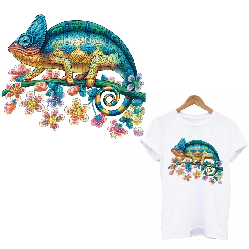 Цветные наклейки-хамелеоны, аппликация утюгом на одежде, термонаклейки с мультяшными животными на одежду, футболку, полоску сделай сам