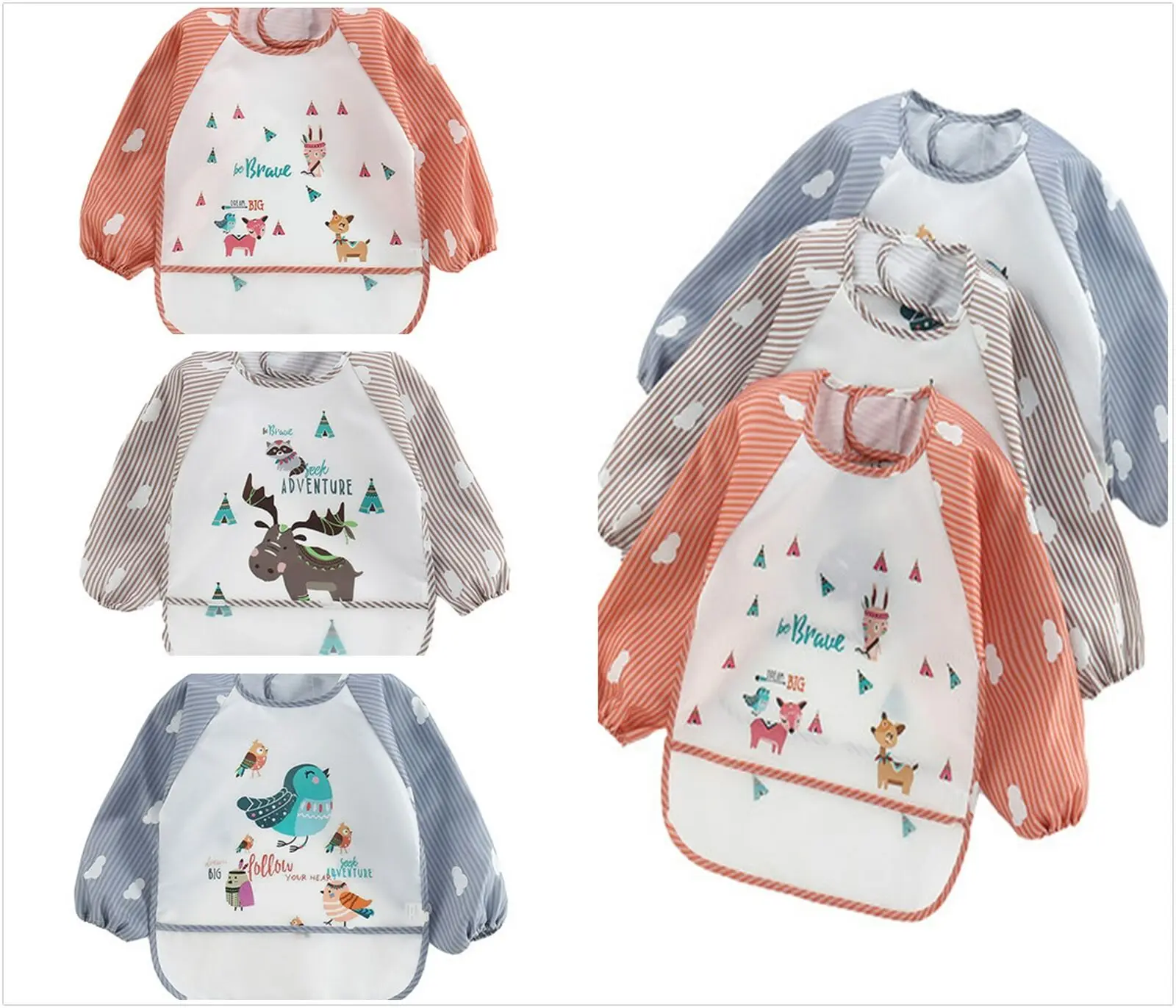 Нагрудник для кормления мальчиков и девочек, длинный фартук для малышей, детские непромокаемые нагрудники, топы для фартук с рукавами лет, Baby1-3