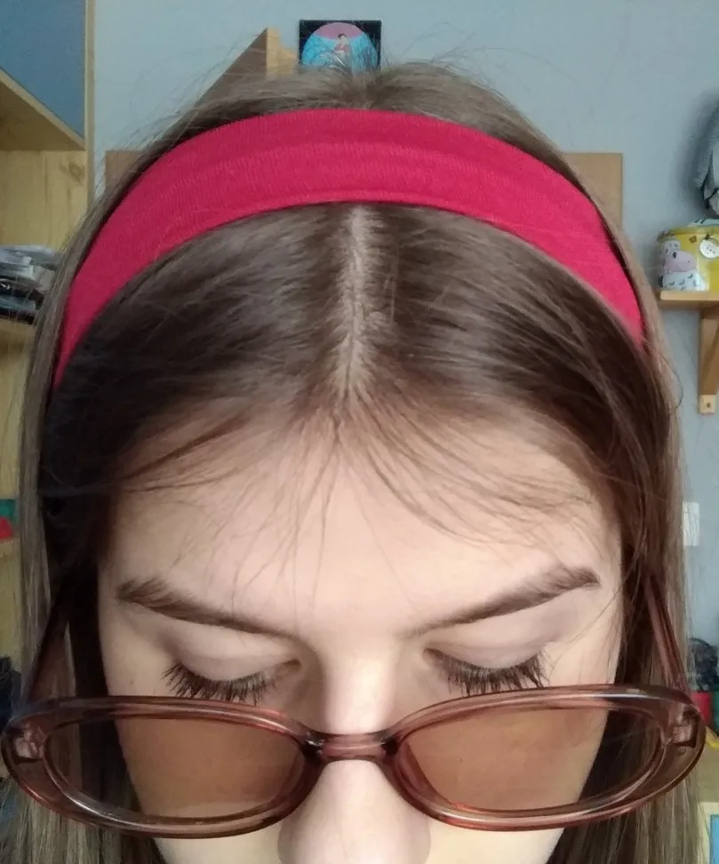 Хорошая повязка для волос, милая! Вы можете легко складывать его, так что это менее широкое слово!