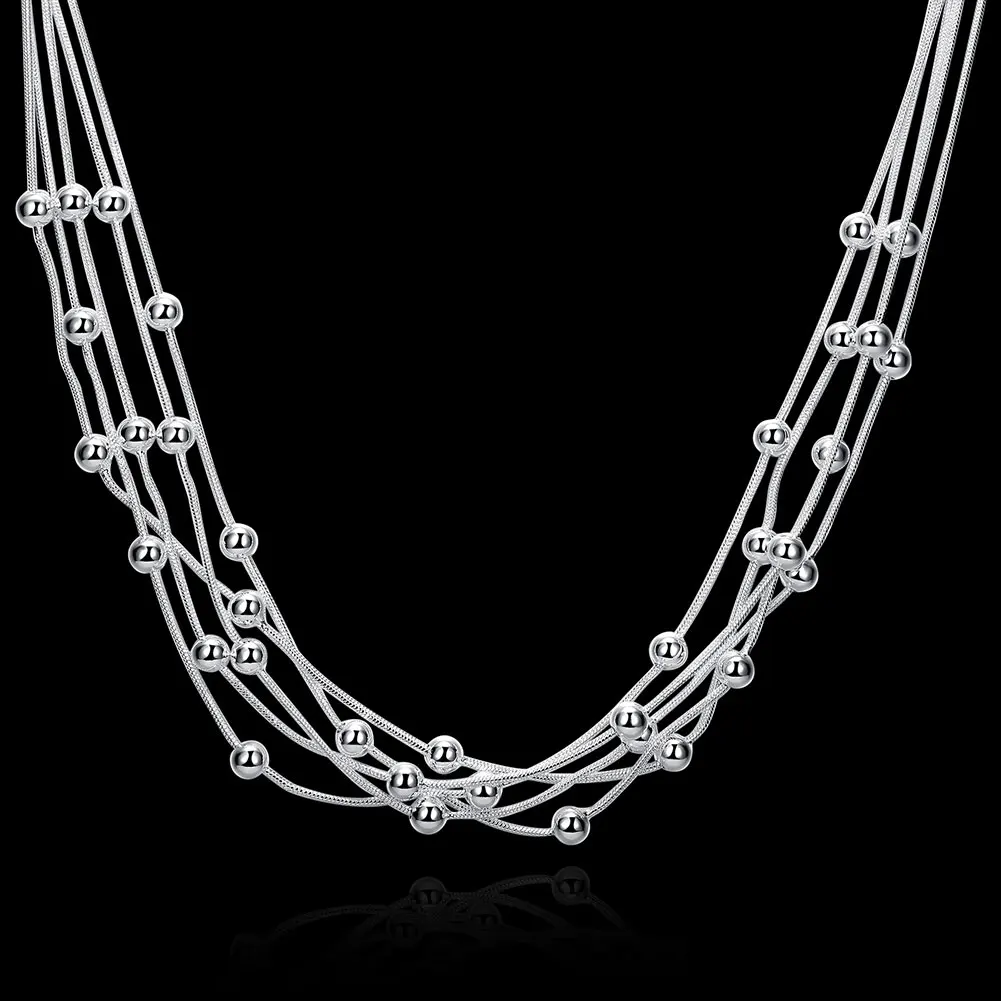 Женские Ювелирные изделия 925 пробы серебра 18 дюймов пять линий бусины змейка цепочка Шарм шарики Многослойные ожерелья ожерелье для женщин