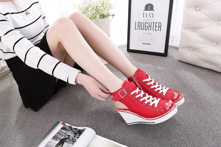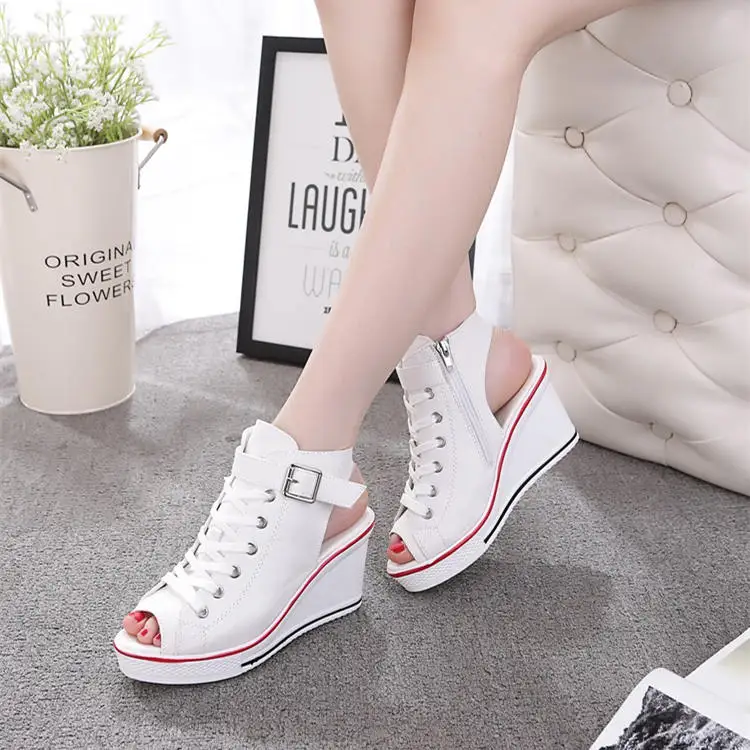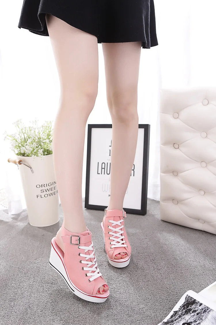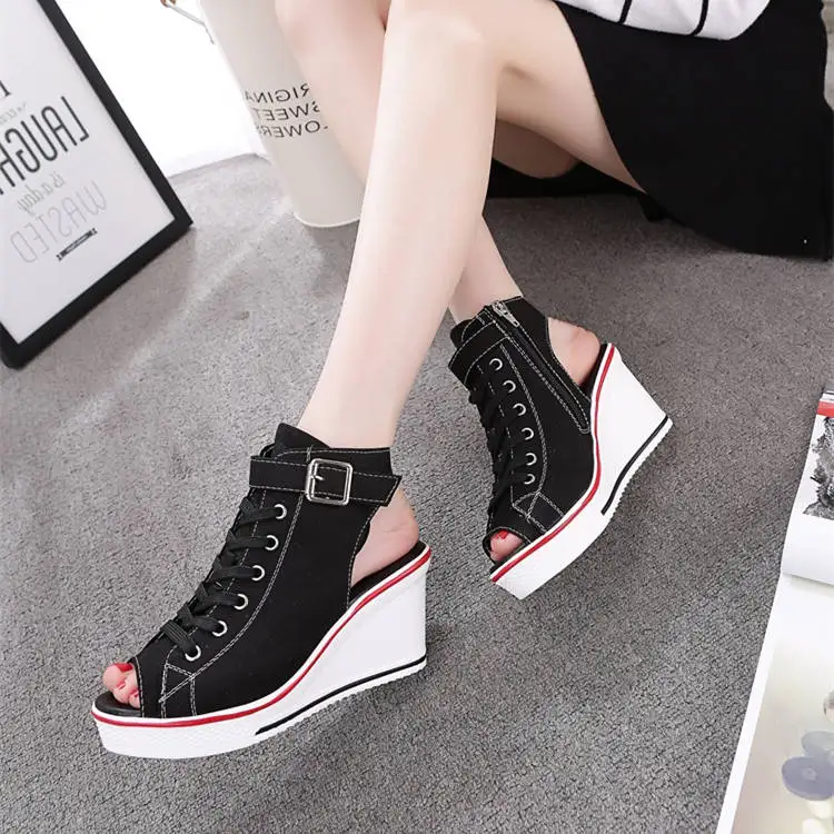 Размера плюс; Летняя обувь из текстиля на танкетке; Женские босоножки на платформе; Женские туфли на высоком каблуке с открытым носком Повседневная дышащая обувь на плоской подошве; Женская обувь на платформе; Обувь; Сандалии