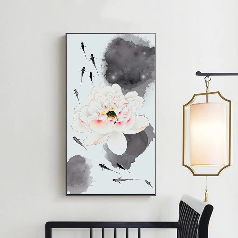 Картина в китайском стиле с абстрактным принтом рыбы кои лотоса, Постер фэн-шуй, Настенная картина для гостиной, домашнего офиса, Декор icon star icon star icon star icon star icon star