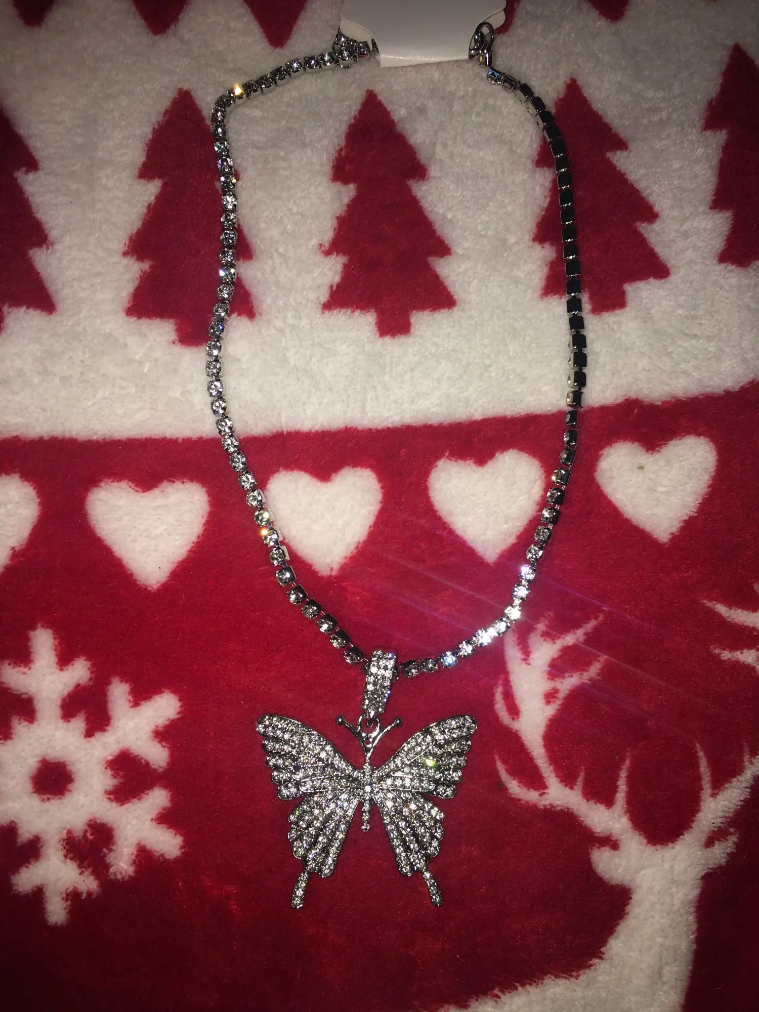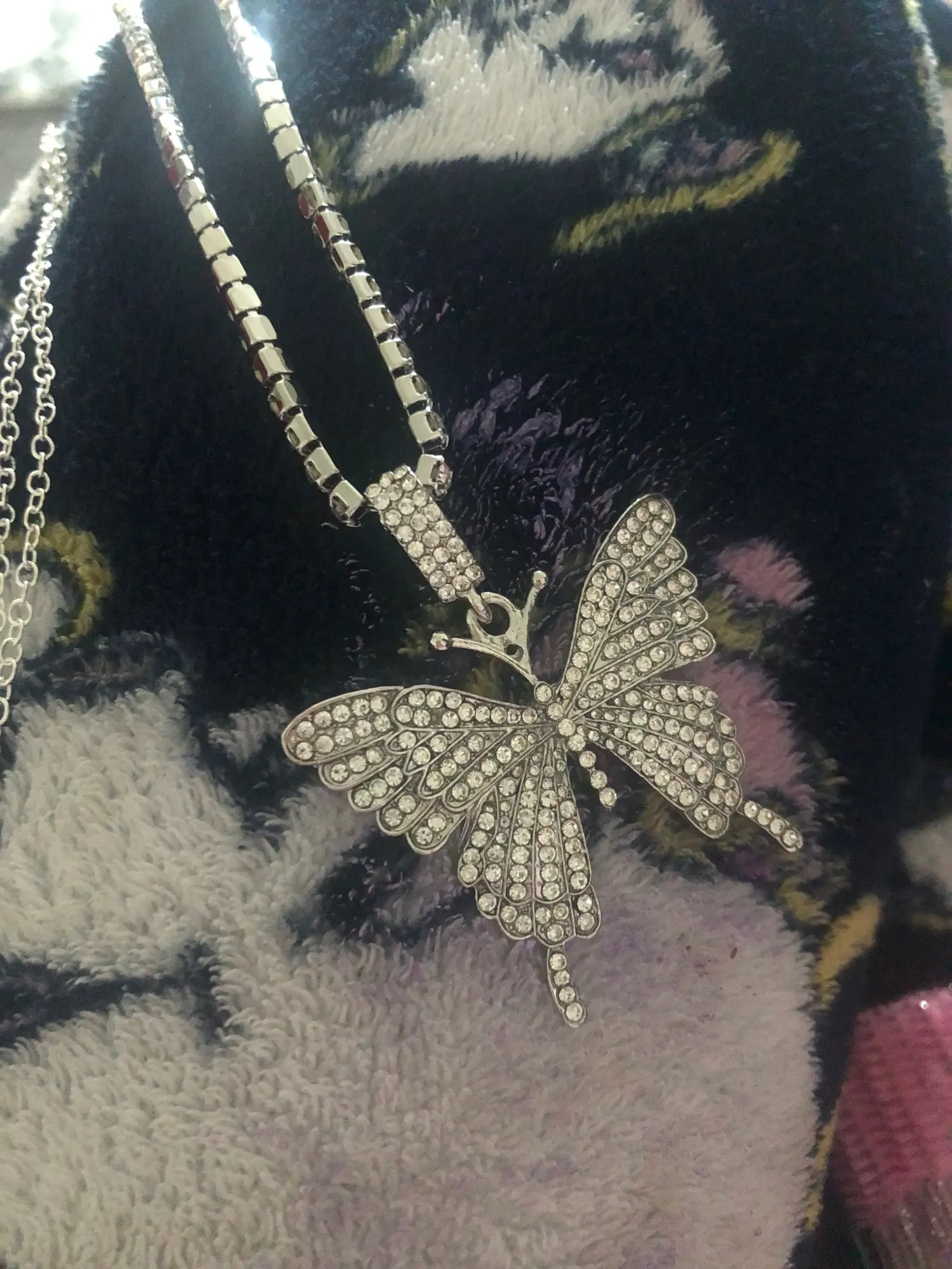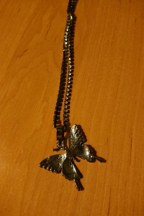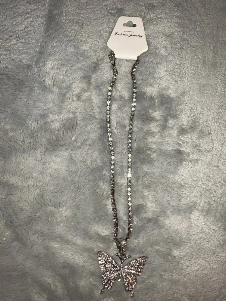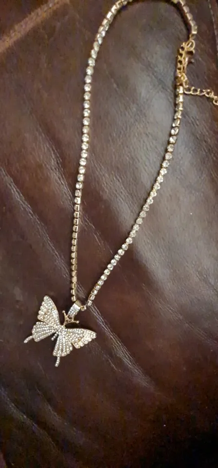 Красивое ожерелье. Бабочка хорошего размера и все хорошо блестит. Я настоятельно рекомендую этого продавца.