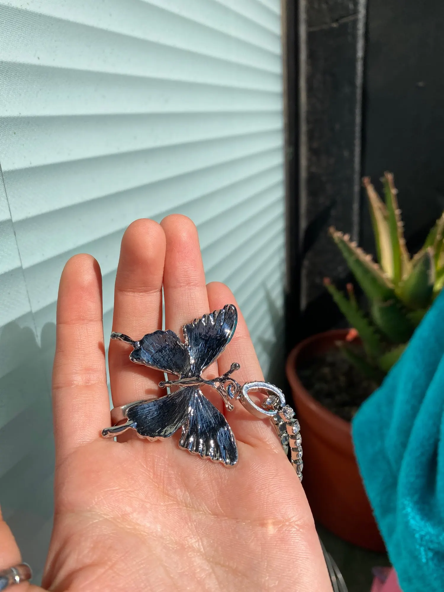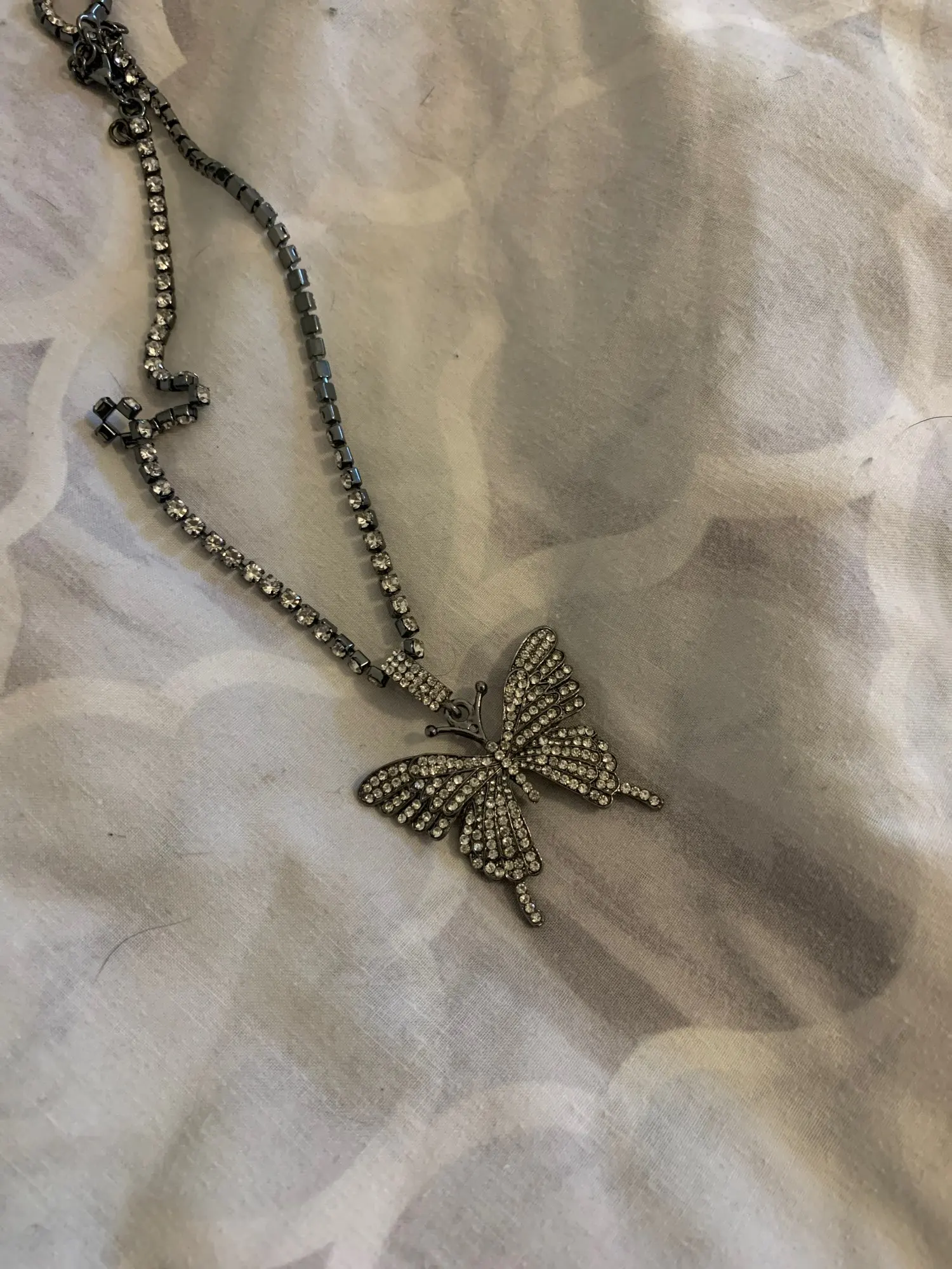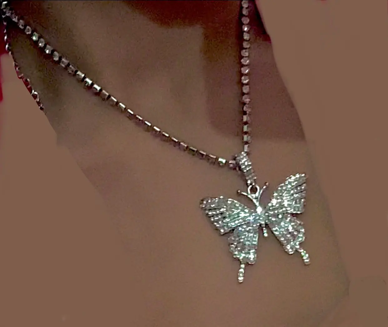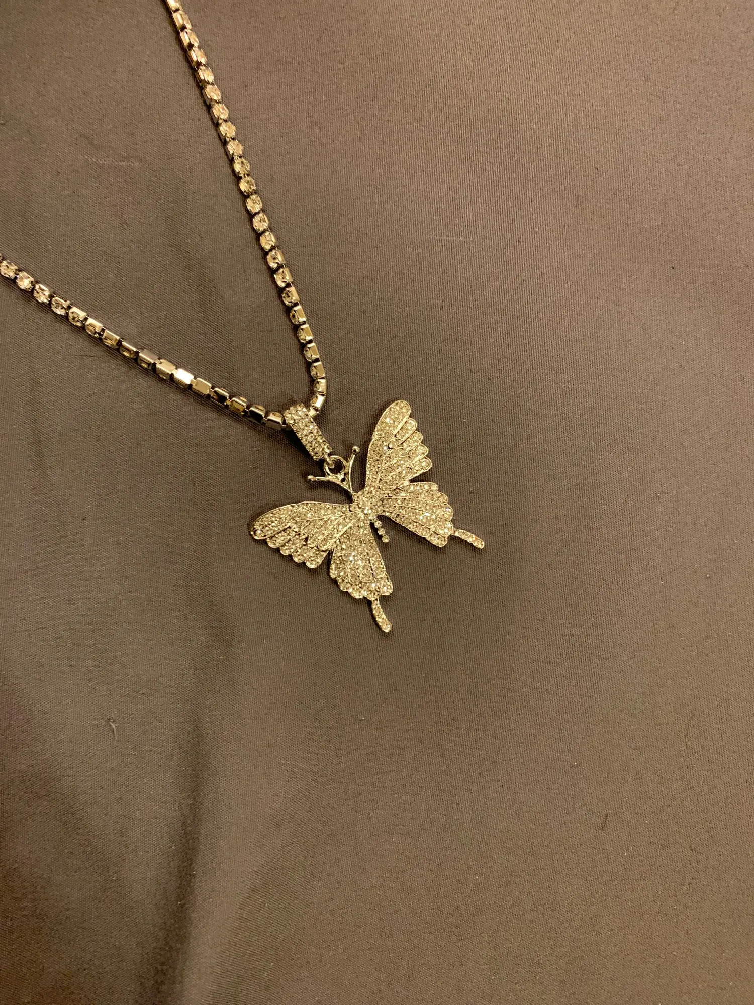 Красивое ожерелье. Бабочка хорошего размера и все хорошо блестит. Я настоятельно рекомендую этого продавца.