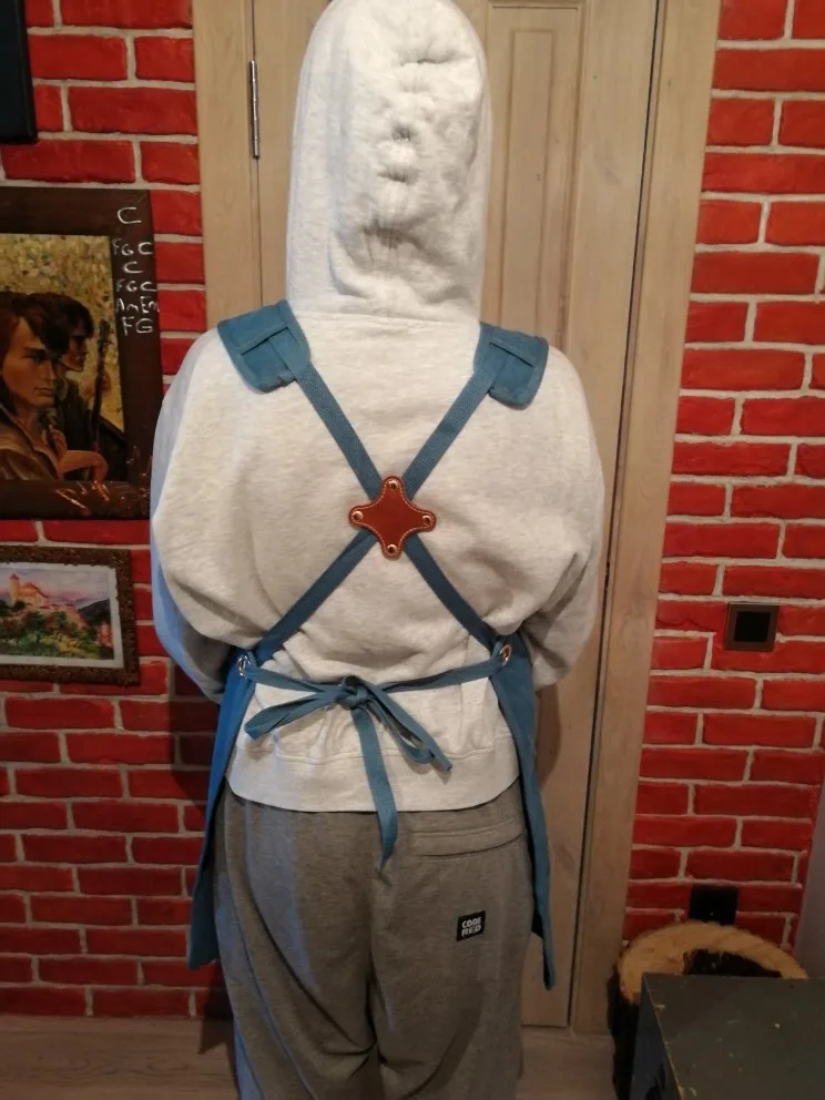 Фартук хороший, сделан качественно, но одна заклепка выпала сразу же, при открывании пакета. Надеюсь, что остальные не отвалятся.
