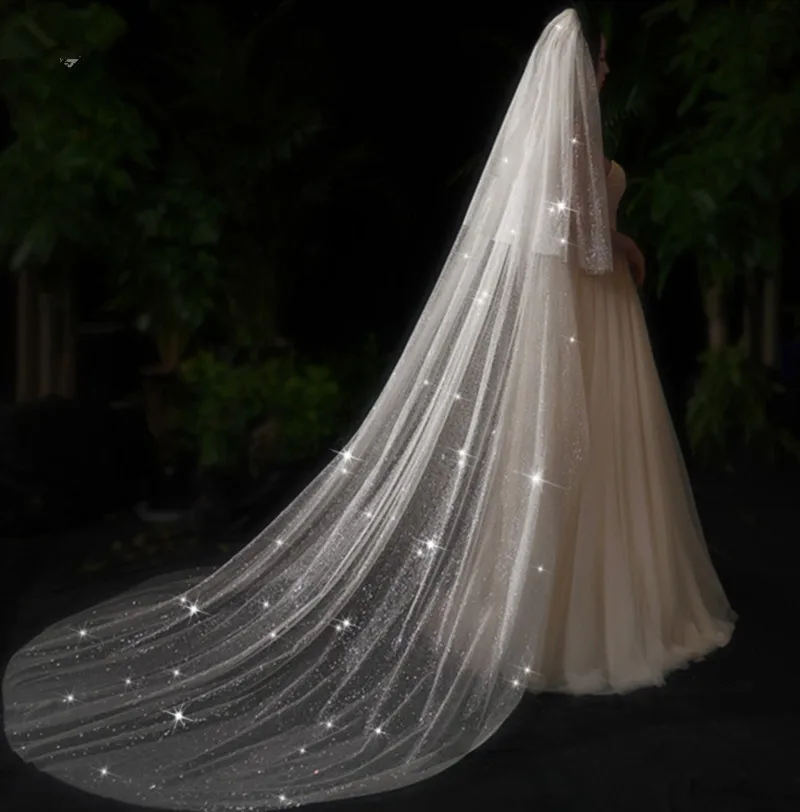 Двухслойная блестящая свадебная фата, фата с блестками, Длинная фата с блестками и покрытием лицом для свадьбы, цвета белого шампанского