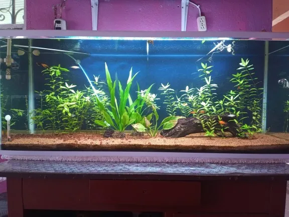 Отличная лампа, режимы работают, таймер еще не проверяла(надо разобраться) Увесистая, светит отлично. Только сильно греется, но и мощность у нее соответствующая! Продавец отлично упаковал, пришла в целости и сохранности! Пришла за 20 дней в СПБ. На фото аквариум 120 литров, Брала 75 см.