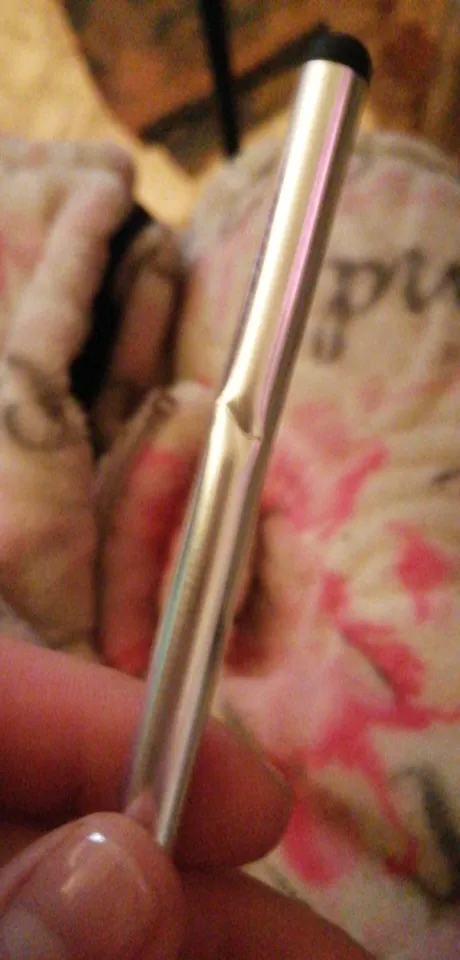 Доставлено за 27 дней в эстонию. Работает с телефоном только тупой конец. Острым видимо можно только серу из ушей или грязь из под ногтей доставать ))