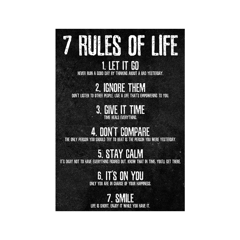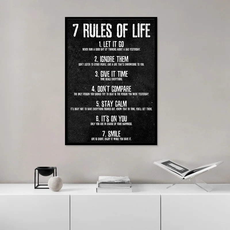 Черно-белый текст 7 правила жизни вдохновляющий Холст плакат офисный класс спальня Безрамная картина холст искусство стена