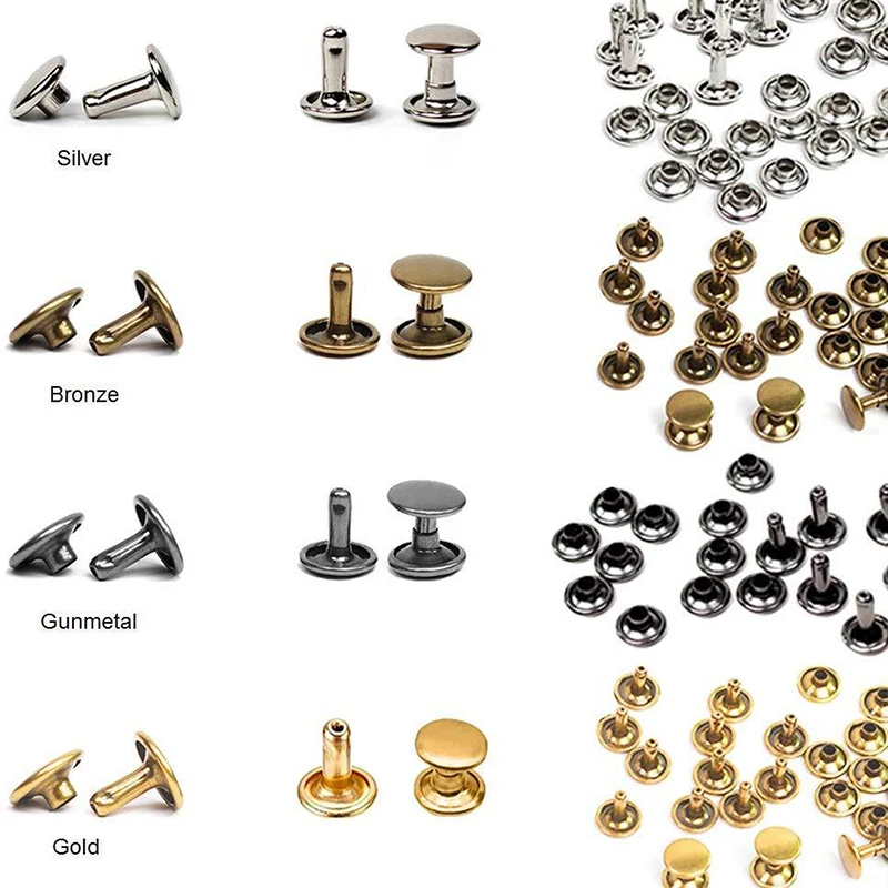 100 наборов металлические двойные заклепки Шпильки круглые заклепки для кожаной сумки ремесло мешок одежды Гвозди обувь Ошейник домашних животных декоративные пуговицы