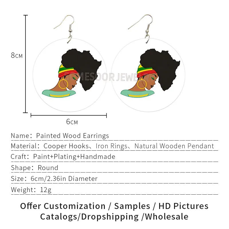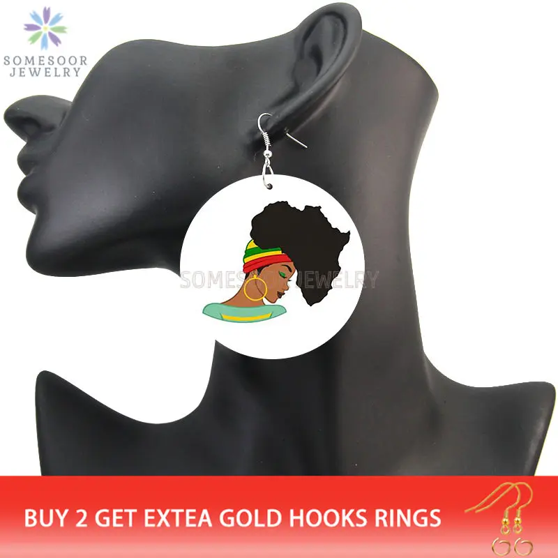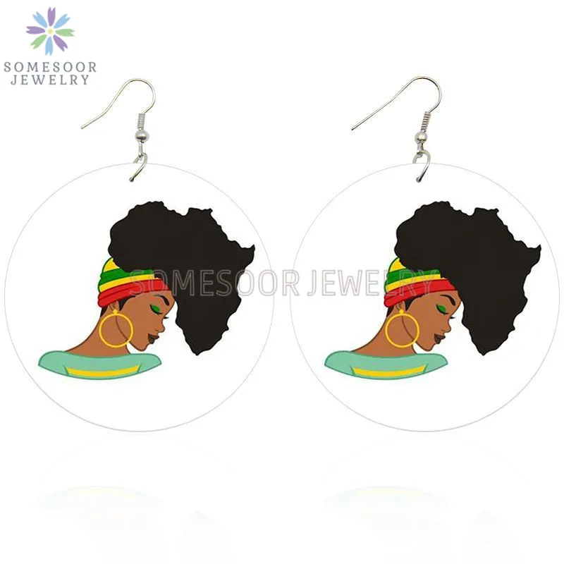 SOMESOOR меланин поппин королева вьющиеся деревянные висячие серьги...