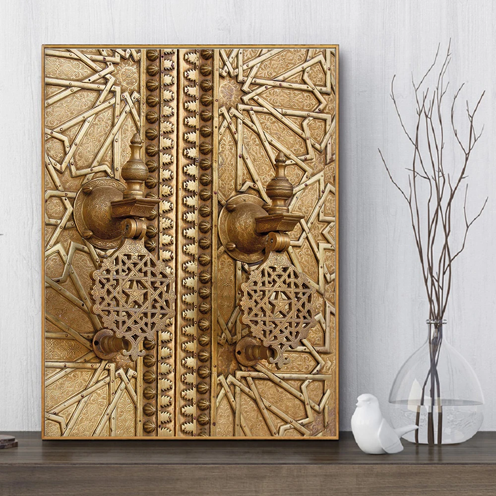 Золотая Марокканская дверь художественные принты домашний Декор Кар...
