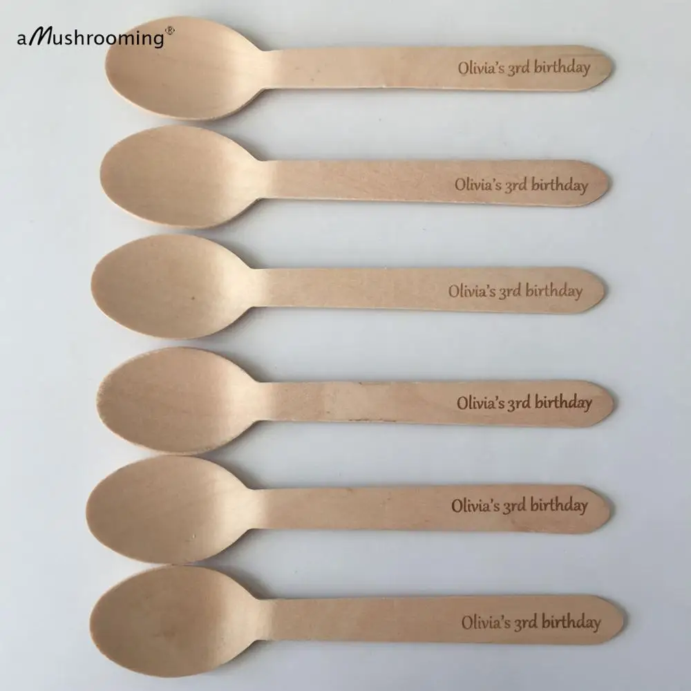 Деревянные ложки на день рождения, ложки для торта на день рождения с лазерной гравировкой, одноразовая посуда для вечевечерние НКИ, детский день рождения, вечерние для девочек и мальчиков