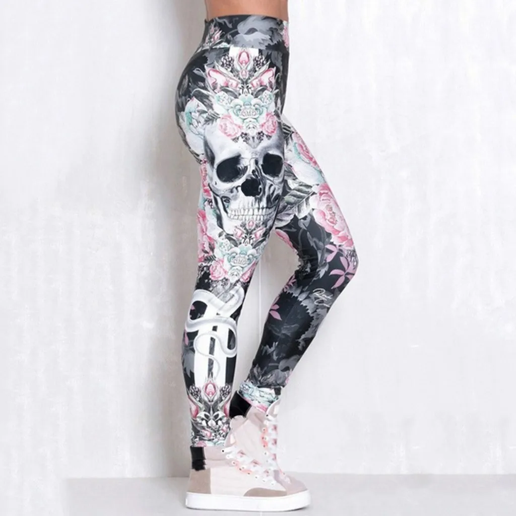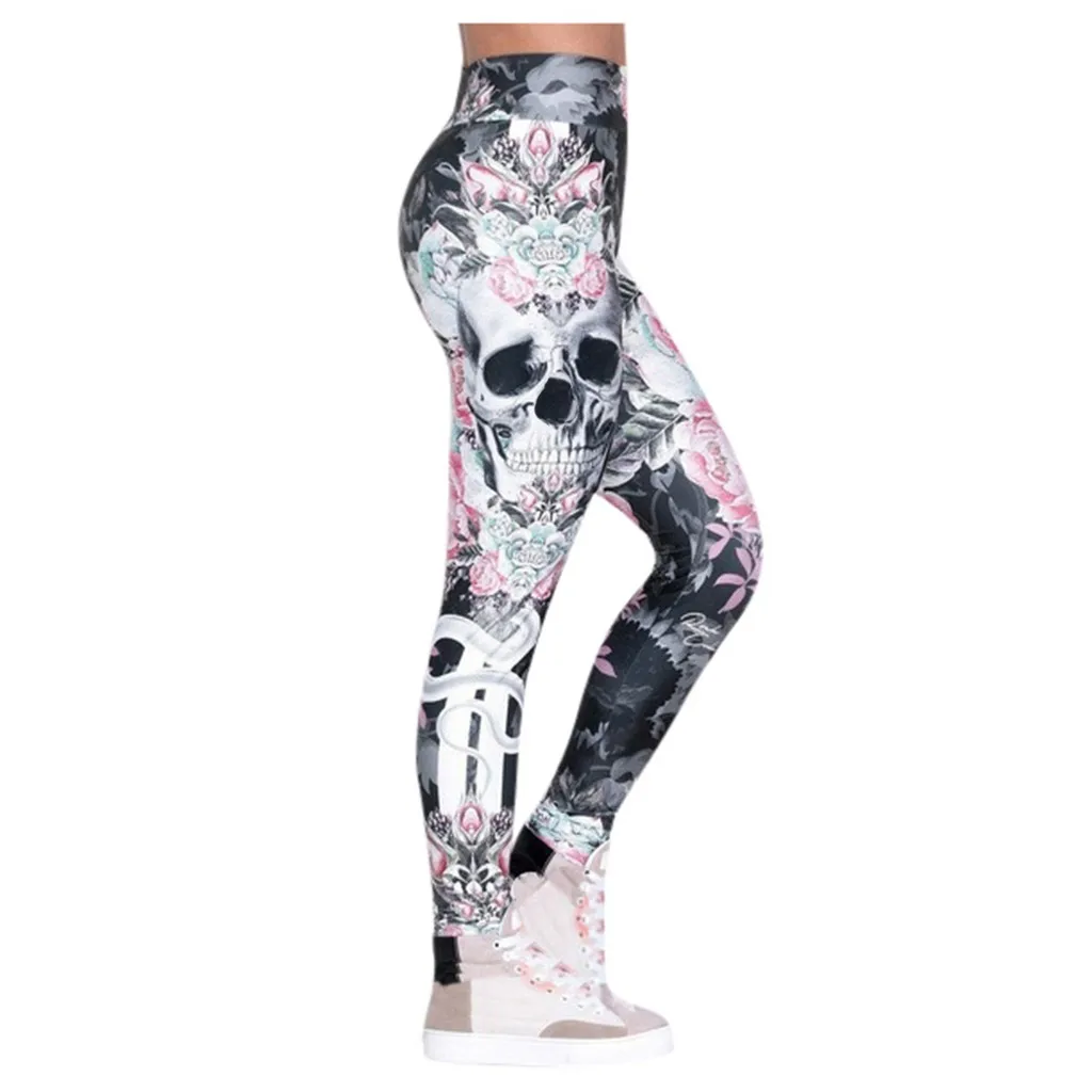 Женские Модные шаровары с принтом черепа, облегающие, Тонкие Леггинсы для йоги с высокой талией штаны