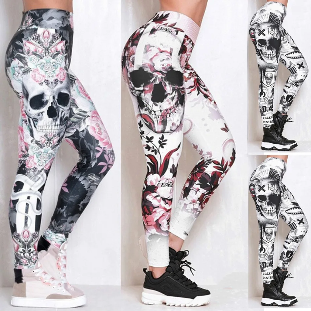 Женские обтягивающие леггинсы с черепом # Z30, легинсы для фитнеса с принтом для тренировок, брюки для женщин, модные леггинсы с высокой талией, одежда для женщин