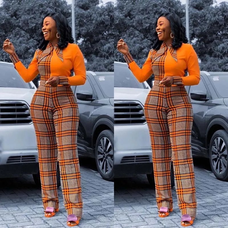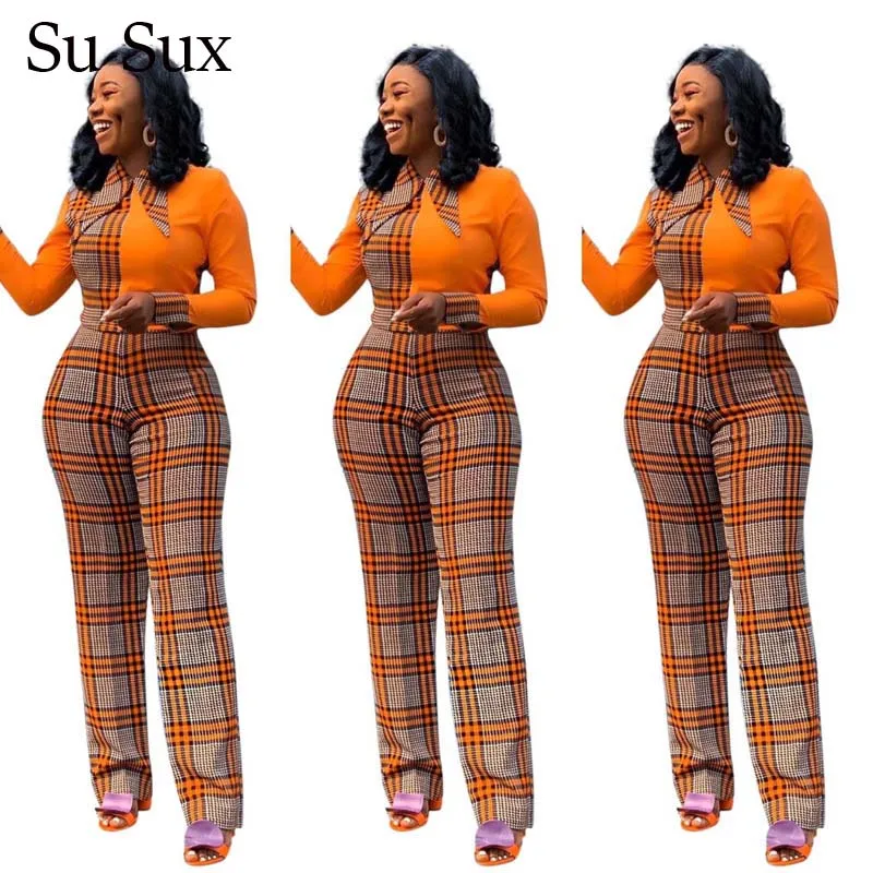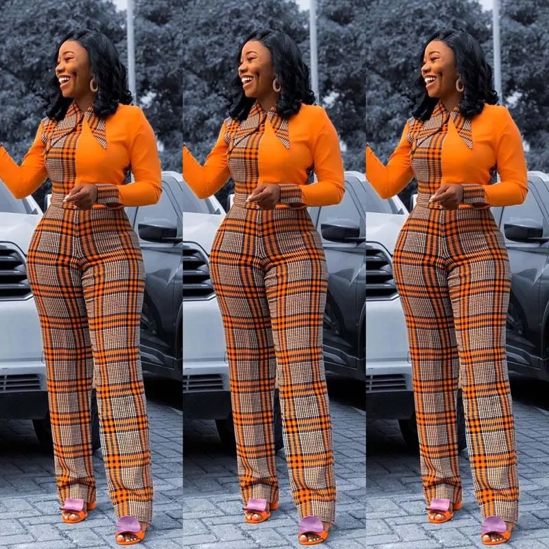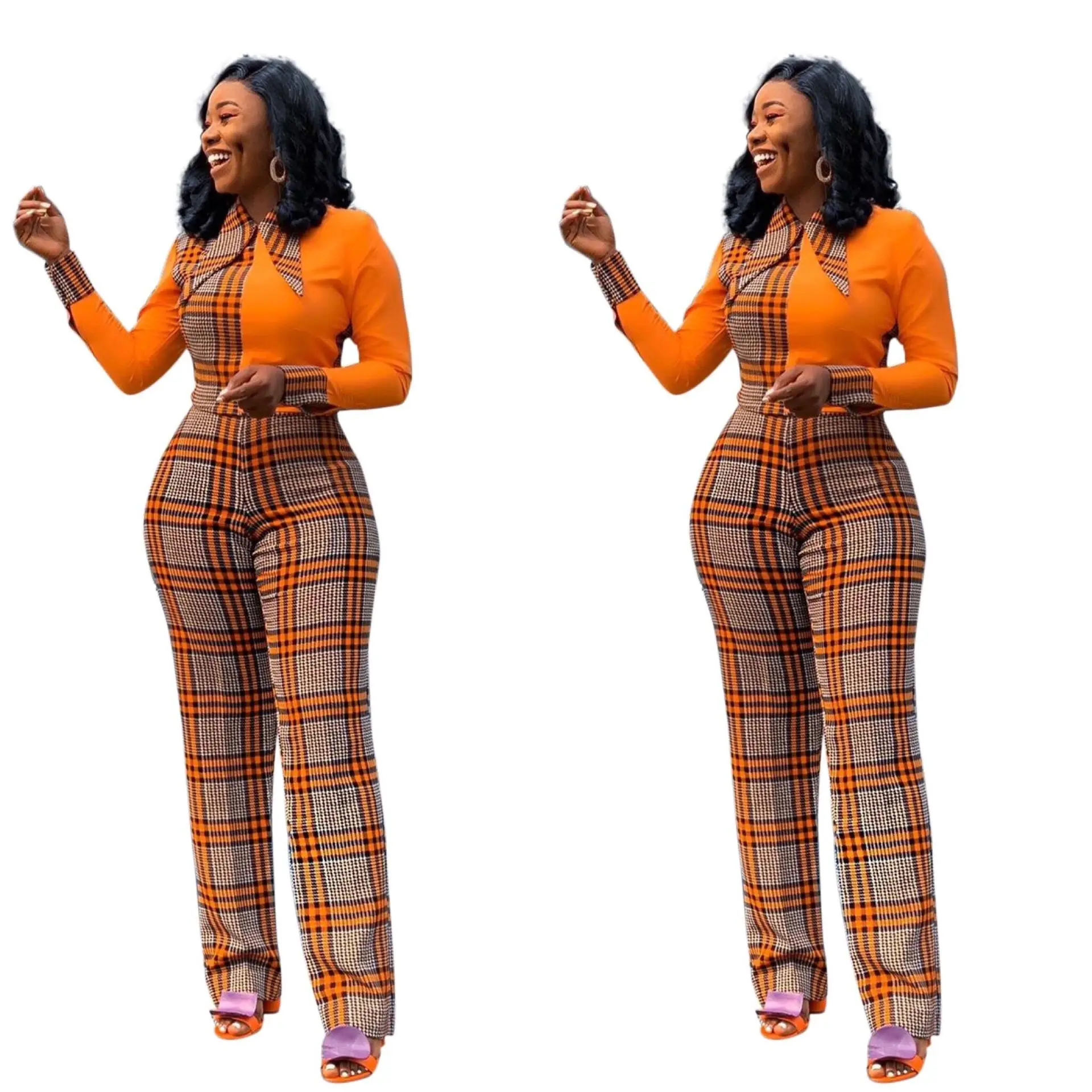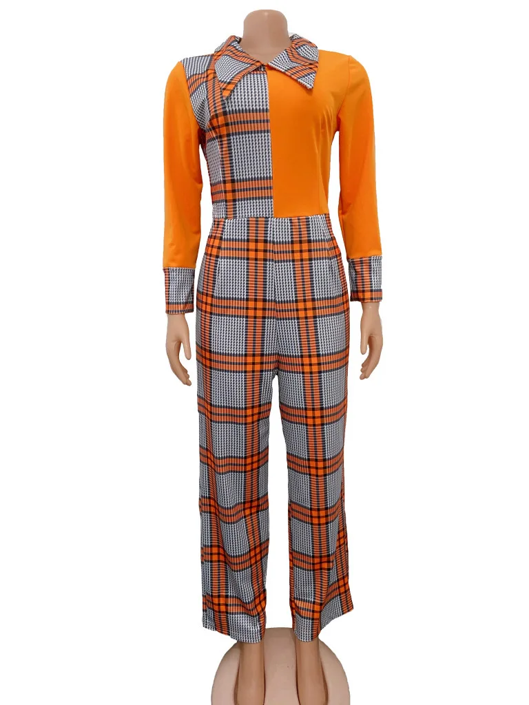 Элегантный женский комбинезон, комбинезон в клетку с длинным рукавом, широкие брюки, комбинезон для офиса, леди, Vestidos, одежда в африканском стиле