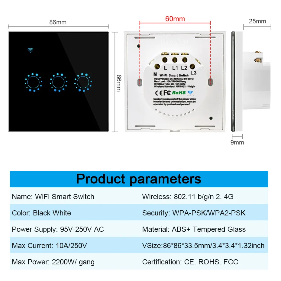 Характеристикиtouch smart wifi switch tuya