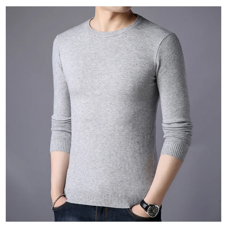 Свитер мужской с высоким воротником, хлопок, приталенный силуэт, вязаный пуловер, однотонный, повседневный трикотажный свитер, Осень-зима