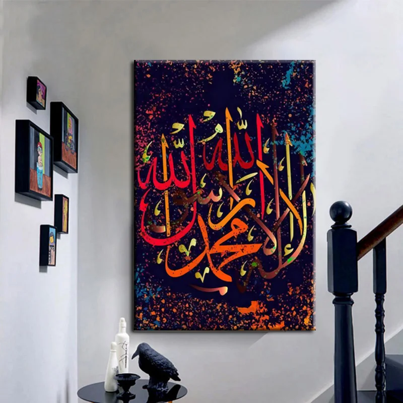Цветная мусульманская исламская арабская каллиграфия, Картина на холсте, плакаты и принты, Настенная картина для декора гостиной