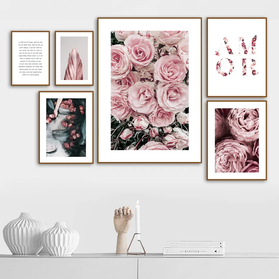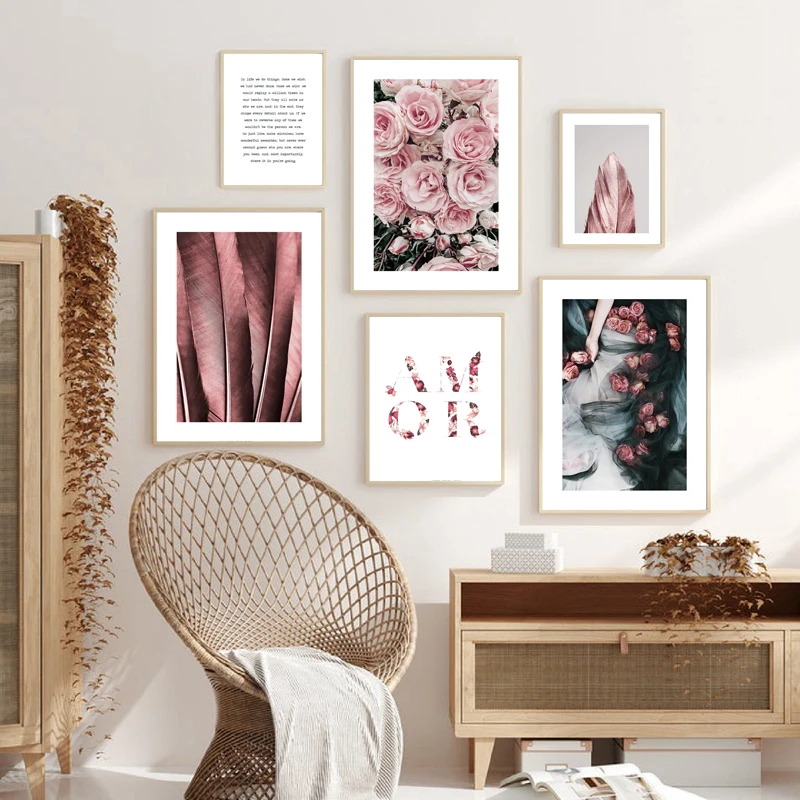 Настенная картина с изображением розовых перьев, скандинавские постеры и принты на холсте, декор для гостиной в скандинавском стиле