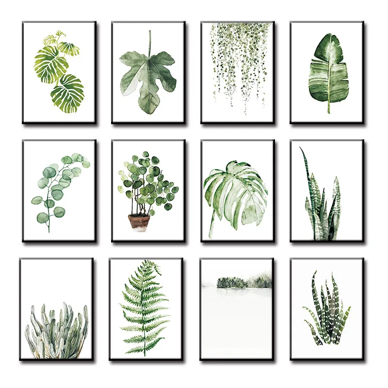 Зеленое растение, натуральное искусство, настенный плакат в скандин...
