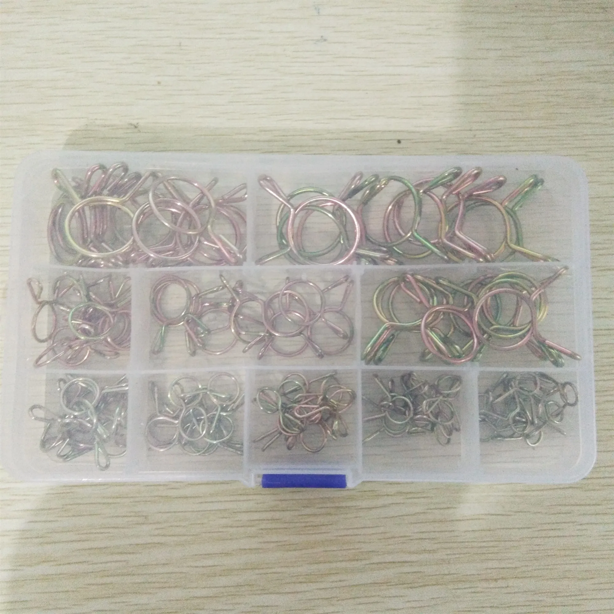 Зажим для шланга, 100 шт., высококачественные оцинкованные пружинные зажимы, зубчатый шланг, зажим для топливной линии, для лодок, квадроциклов, мотоциклов, с ящиком для хранения