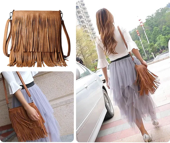Сумка-мессенджер через плечо женская, повседневный Винтажный конверт с кисточками, несколько цветов, 2020