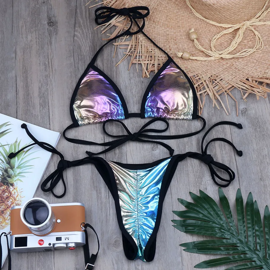 VIKINII 2020, женский купальник с тиснением, сексуальное бикини с градиентом, блестящие женские купальные костюмы, купальный костюм, Новинка