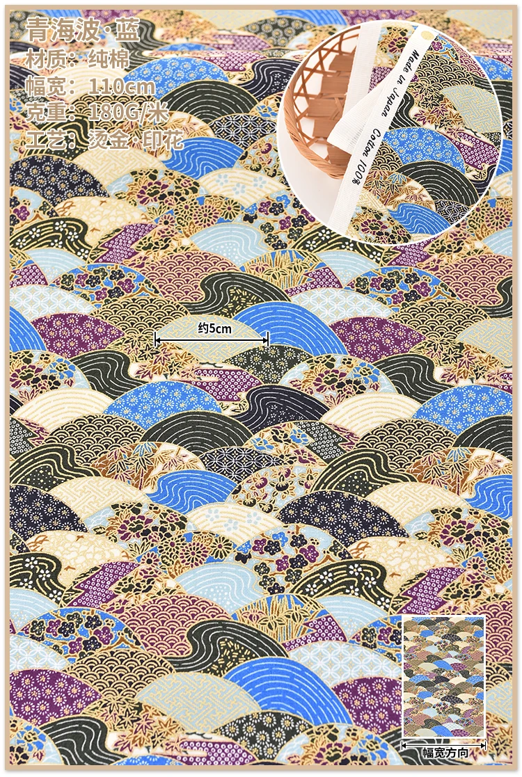 Японская хлопковая ткань с принтом в стиле пэчворк, материал для стеганых изделий для шитья кукол и сумок, аксессуары для рукоделия, 140x50 см