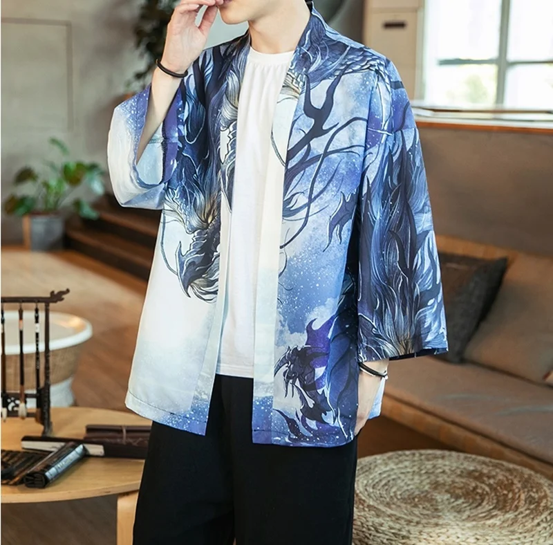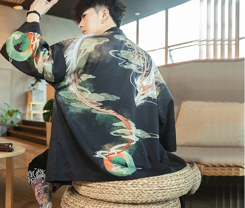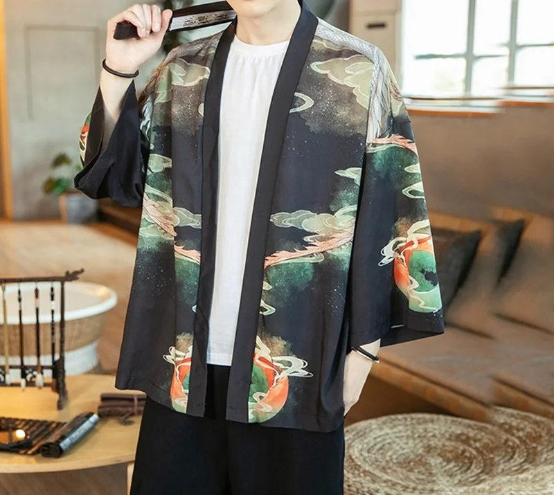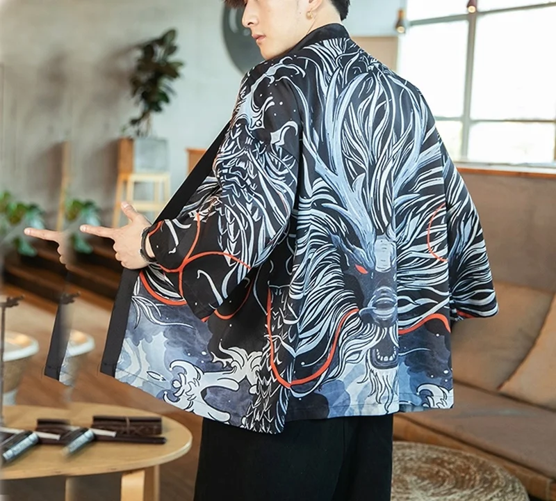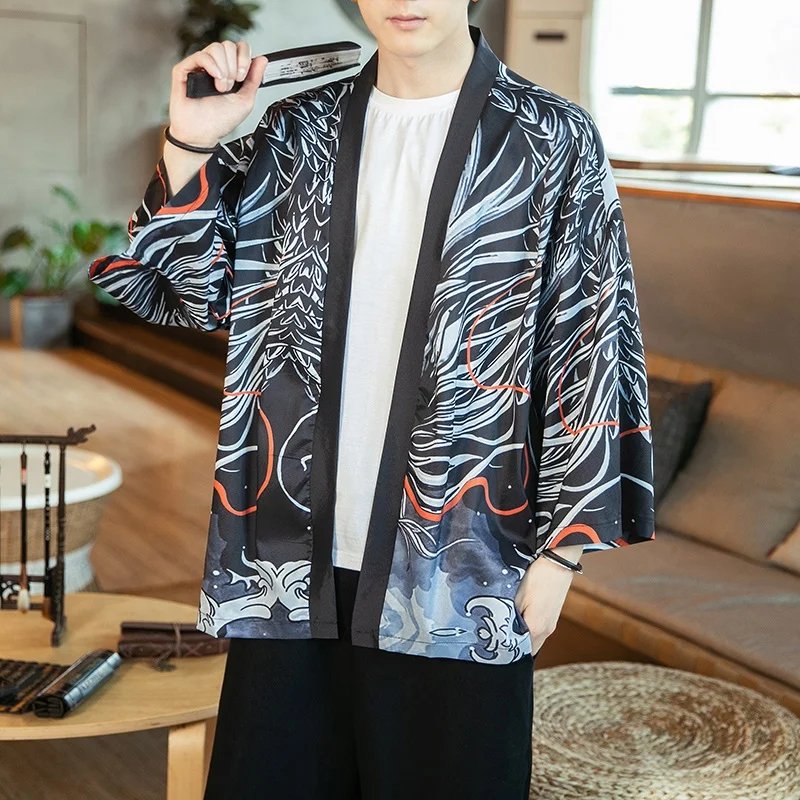 Кимоно, кардиган, мужской, японский Оби, юката, хаори, японское кимоно самурая, рубашка, Мужская Традиционная японская одежда FF2679
