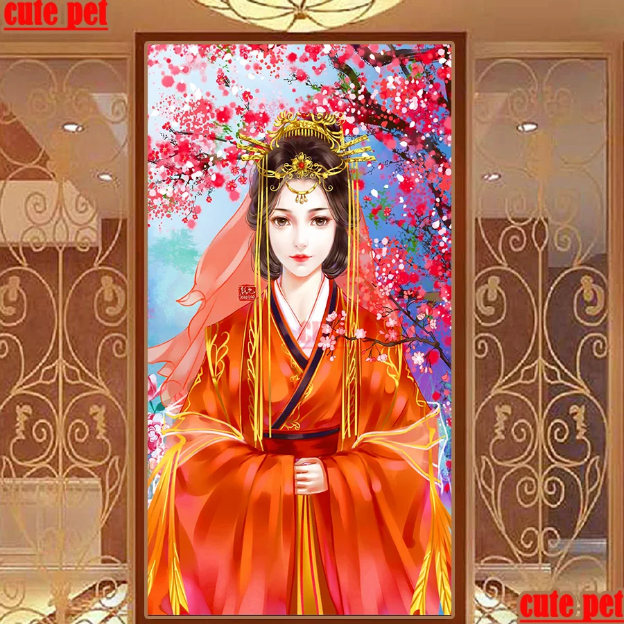 Большая алмазная живопись, полный квадрат, круглая, Китайская классическая невеста, сделай сам, алмазная вышивка крестиком, алмазная 5D стразы, Декор