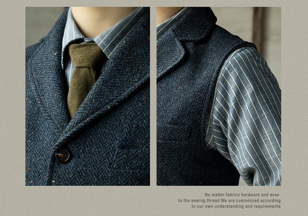 100% шерсть Винтаж стильный жилет 560 GSM Мужские Повседневное твид...