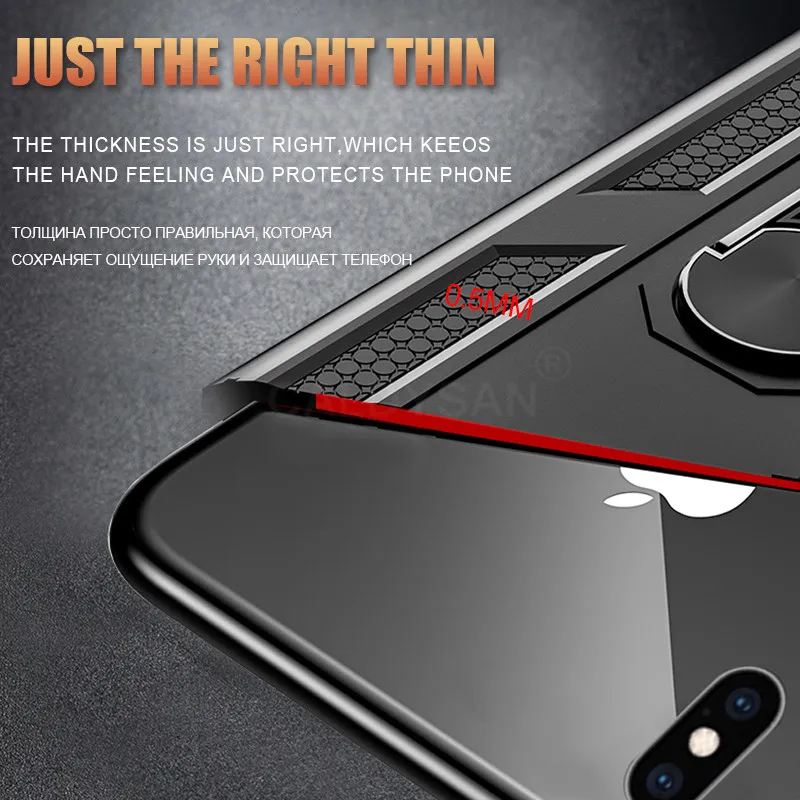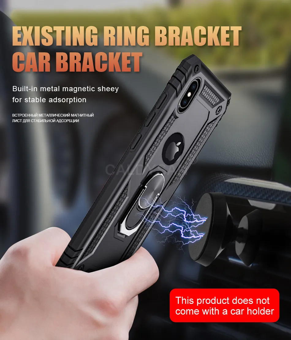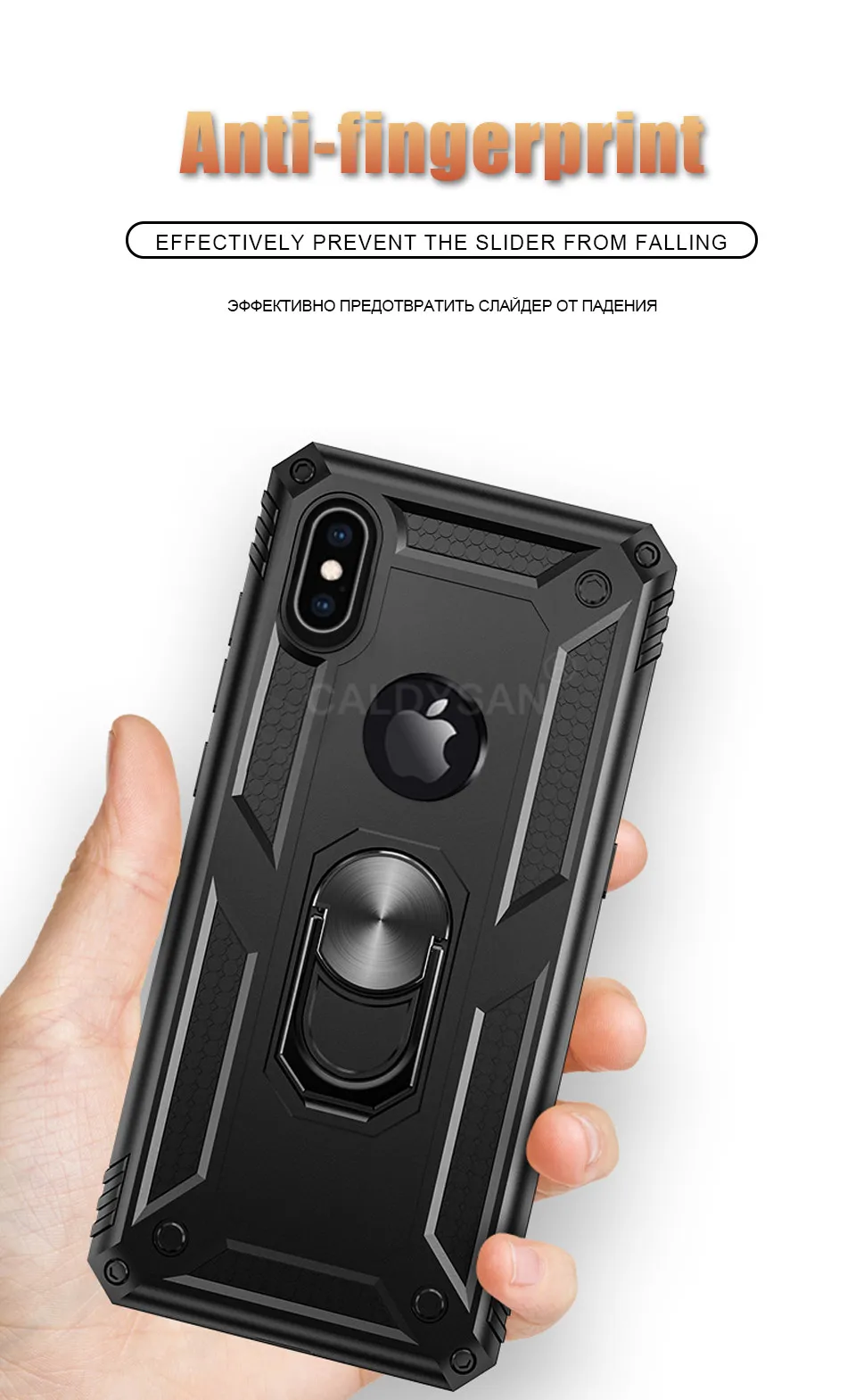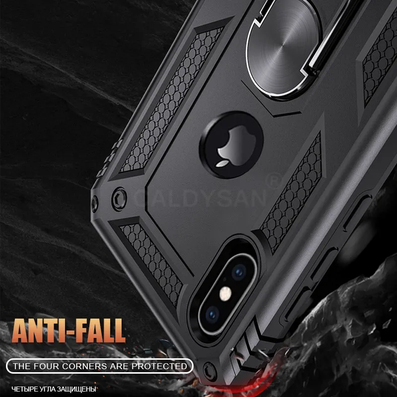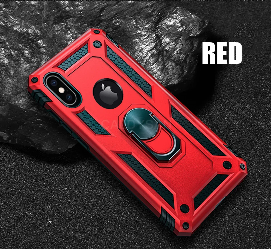 Чехол-накладка для смартфонов Apple iPhone 6-12, SE, металлический, противоударный, с магнитным кольцом-держателем, 4 цвета