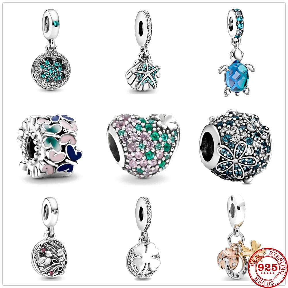 Новый кулон из стерлингового серебра 925 пробы с синими морскими черепашками, морскими звездами, бабочками сделай сам, изящные бусины, подходит для оригинального браслета Пандоры, ювелирные изделия