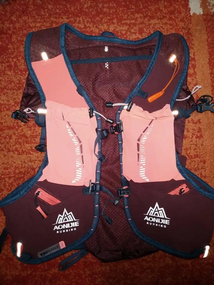Этот беговой жилет выглядит и очень хорошо выглядит. К сожалению, размер немного мал для меня, когда он наполнен шестерней. Теперь я заказал больший размер. Колбы короче и шире стандартных колб. Но также качество колб очень хорошее. В целом я рекомендую жилет.