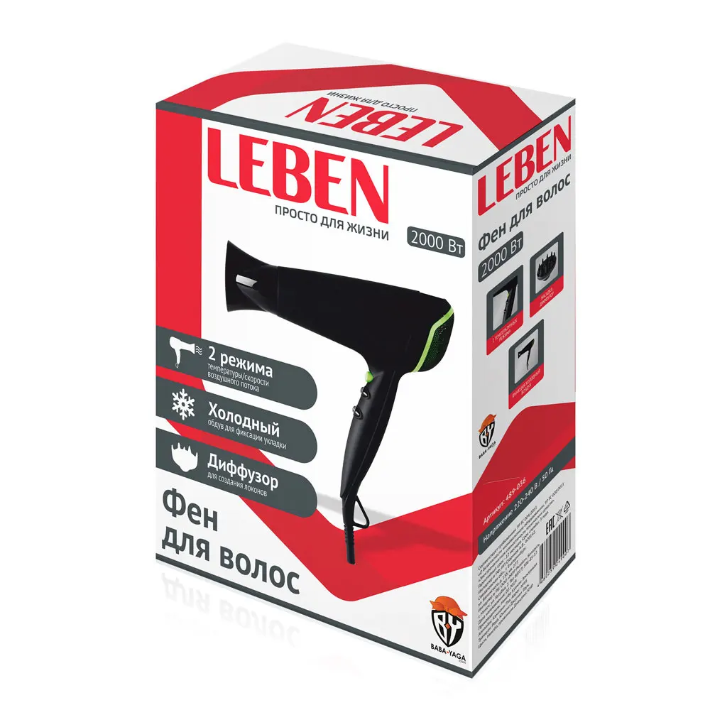 ФЕН ДЛЯ ВОЛОС ПРОФЕССИОНАЛЬНЫЙ LEBEN 2000 ВТ, С ДИФФУЗОРОМ
