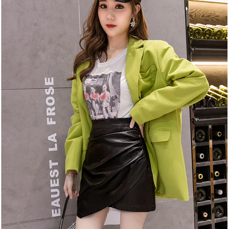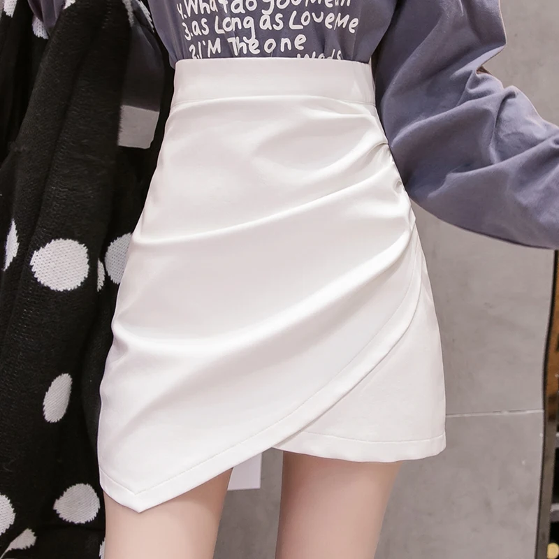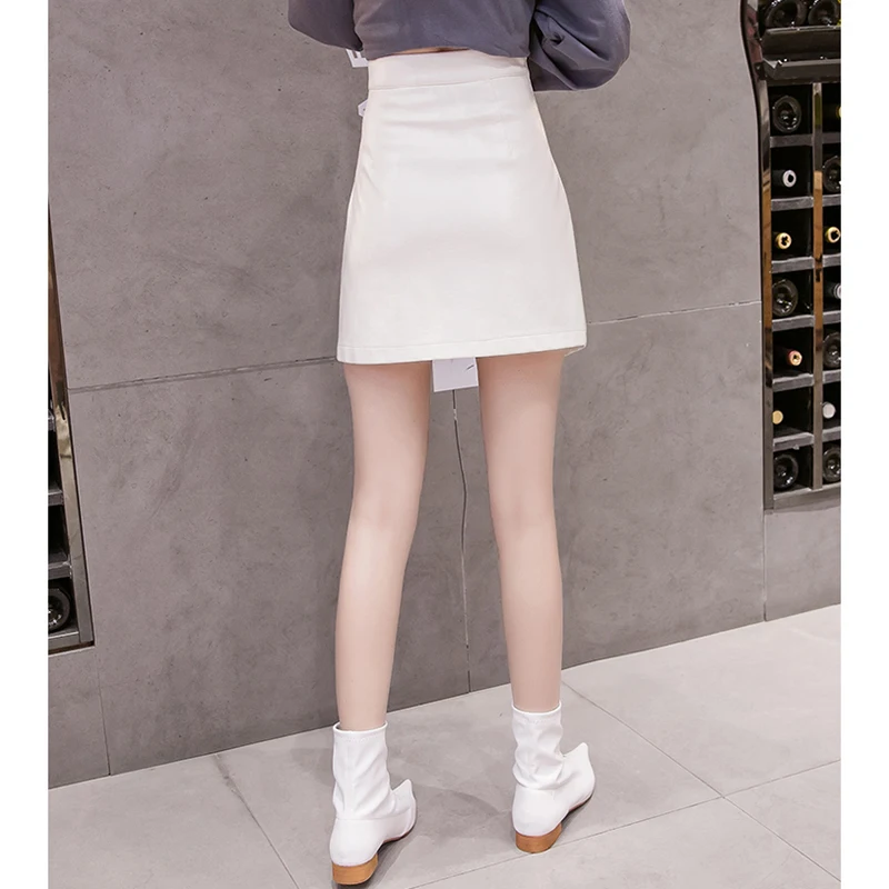 Юбка мини из искусственной кожи, черная, белая, а-силуэта, с завышенной талией, на весну, лето, зиму, 2021