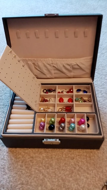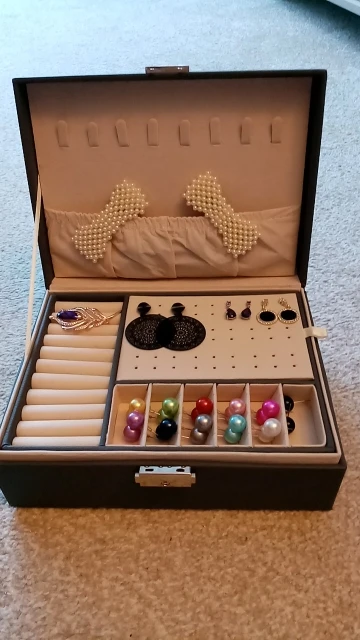 Красивый ювелир. Хотя и не очень большой размер, он разработан очень хорошо, чтобы воспользоваться каждым пространством. Доставка была быстрой и защитой 10. С 2 подарочными хвостами.